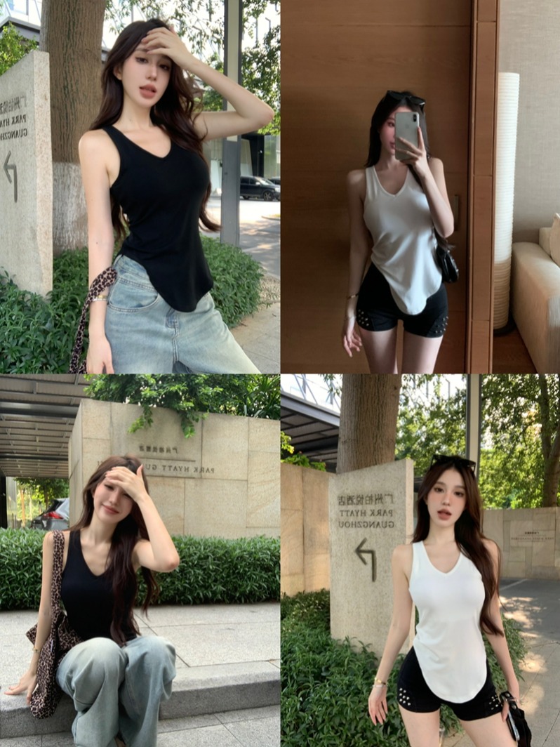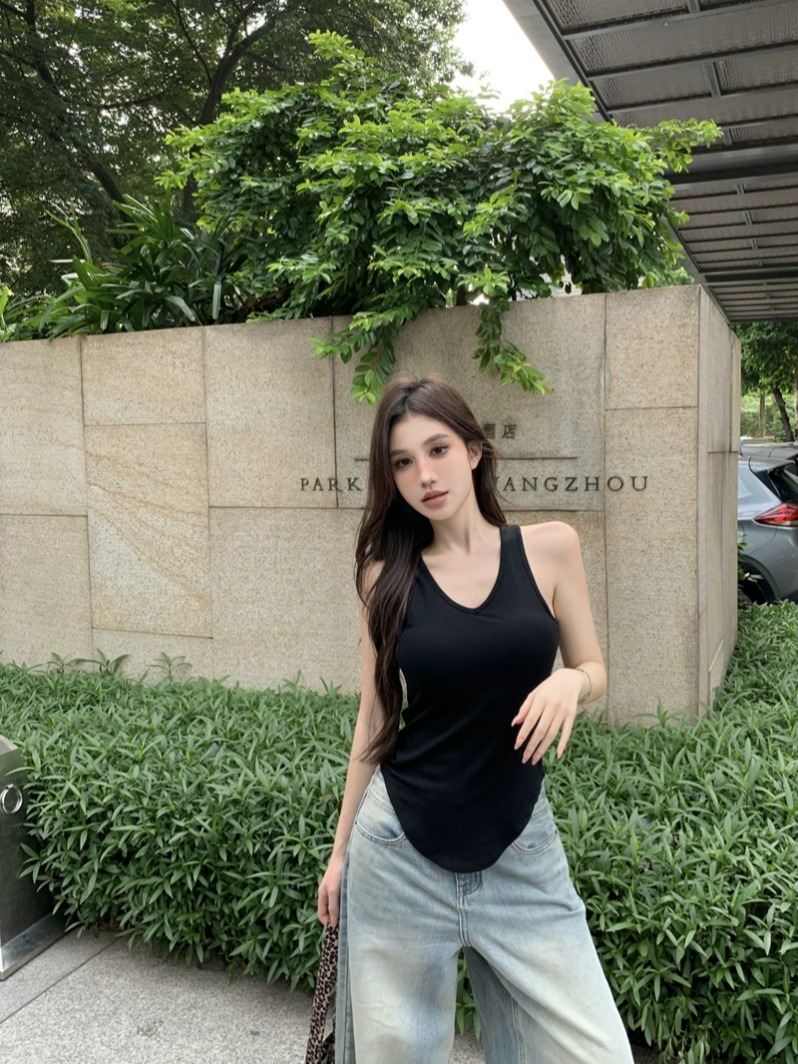 진짜 가격 Xia Chun Hot Girl V-Tie 가슴 패드를 입지 않고 Brav Neck Slim Vest 여성 소수판 상단