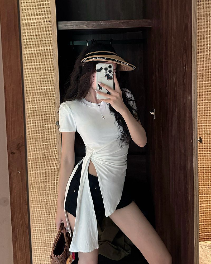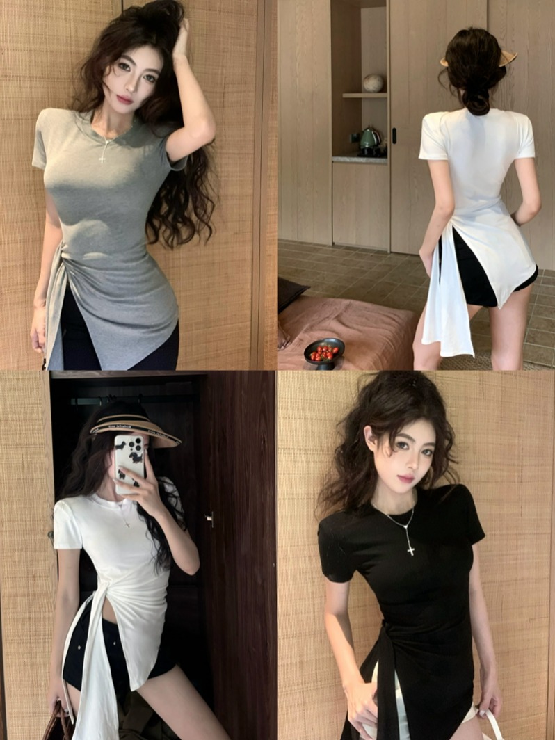 허리 슬림 어깨 패드 탑을 가진 여성을위한 실제 가격 여름 핫 걸 스타일 디자인 사이드 슬릿 스트랩 단축 티셔츠