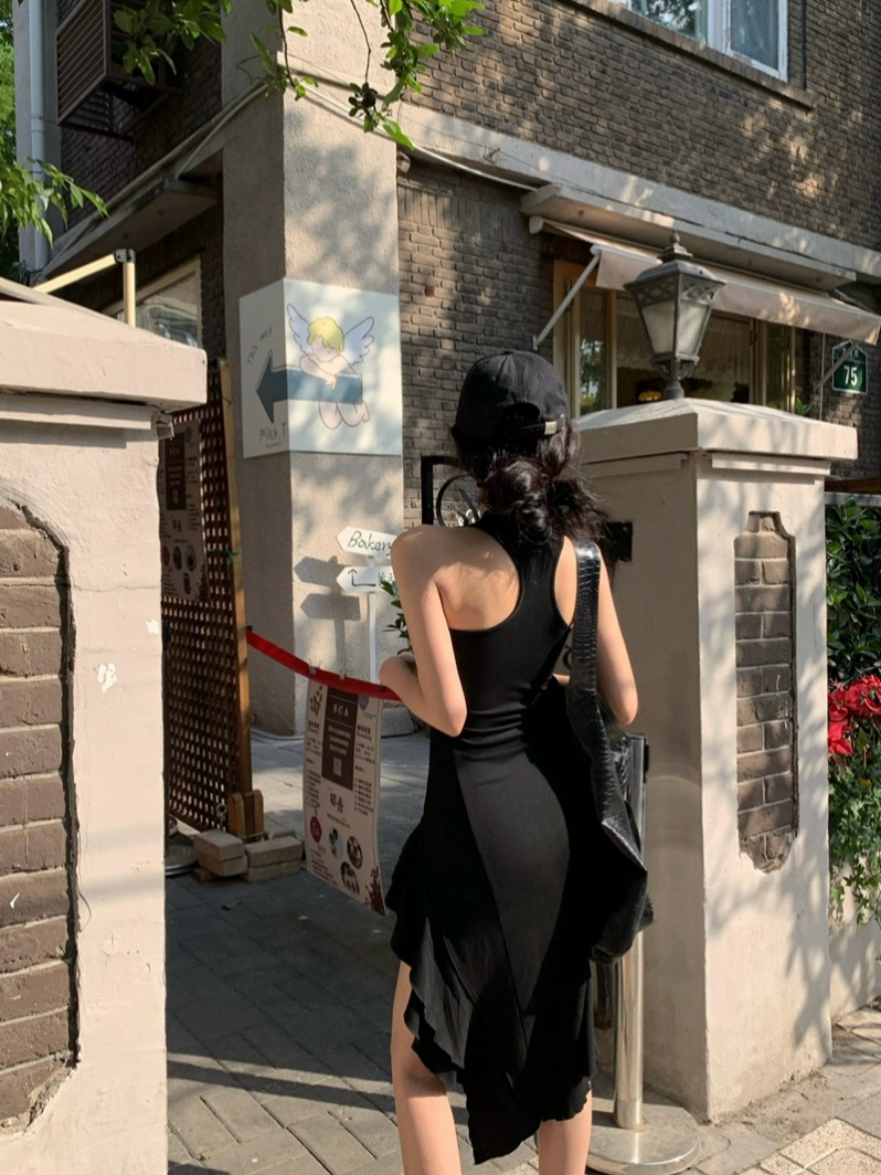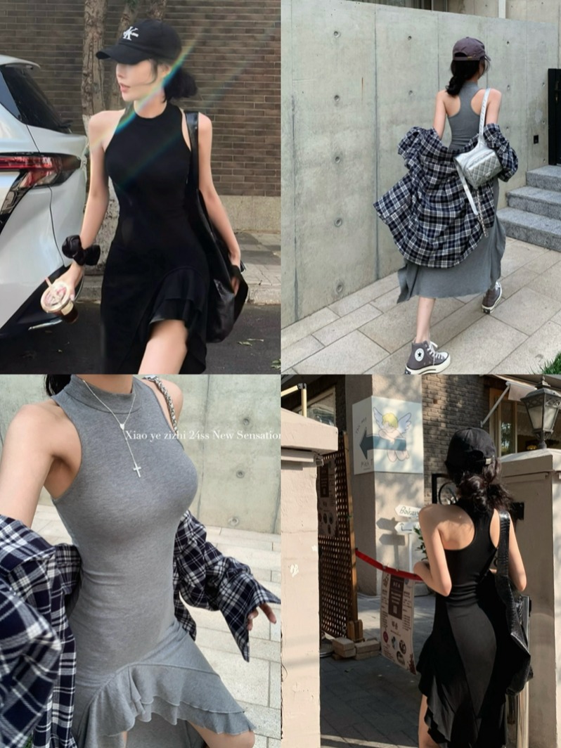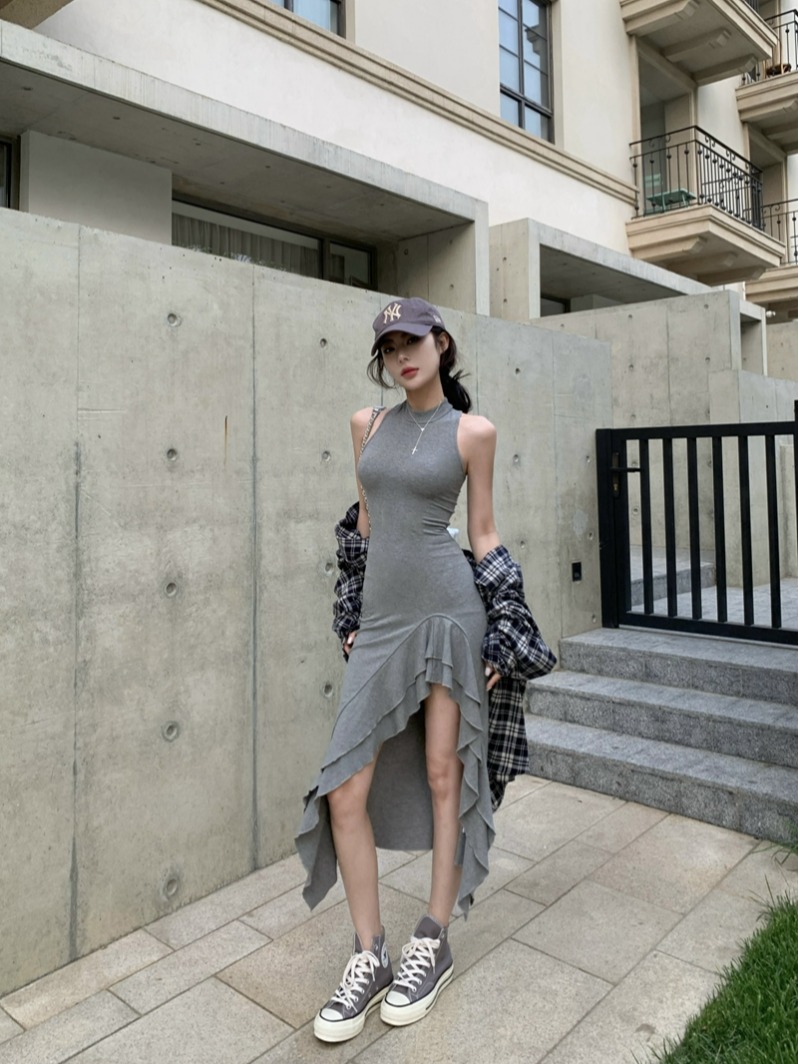 진짜 가격 여름 순수한 핫 걸 스타일 슬립 벨스 조끼 긴 치마가 높은 슬릿 힙합 드레스를 가진 여성을위한 긴 치마