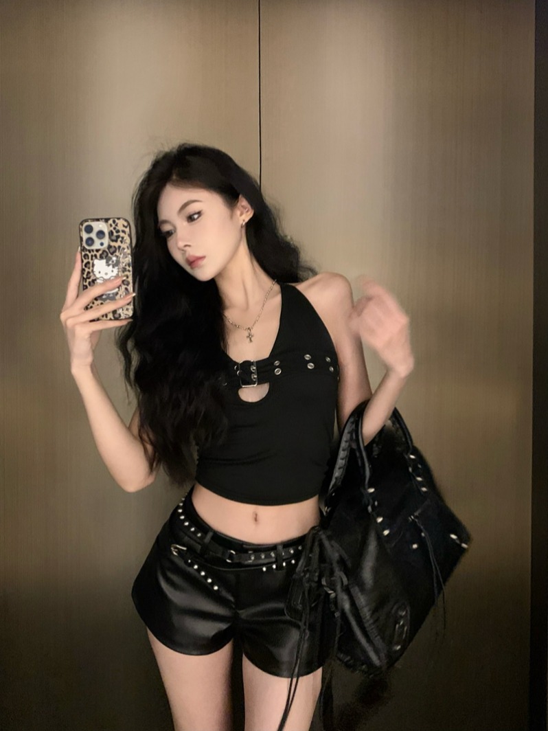 진짜 가격 여름 미국 섹시한 섹시한 핫 여자 등이없고 향수가 많은 가슴과 고삐 목 조끼 여자 친구 금속 버튼 탑