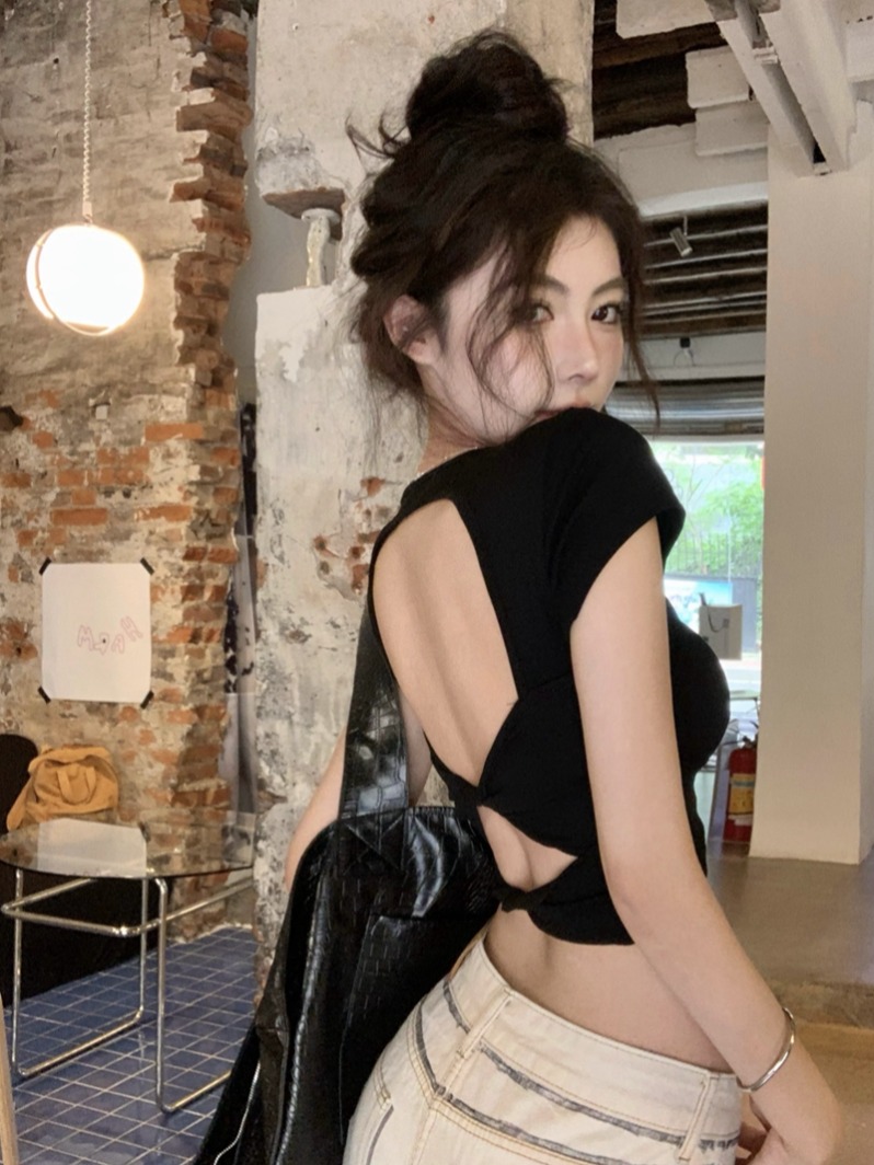 사실상의 뜨거운 여자 순수 욕망과 등이없는 앞쪽 어깨 단축 테 셔츠 여성 디자인 허리 껴안는 가슴 패드와 함께 탑