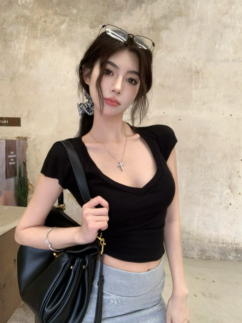 진짜 가격 여름 요정 작은 t 순수하고 얇은 v 넥 테니스 흰색 짧은 슬리브 티셔츠 짧은 탑