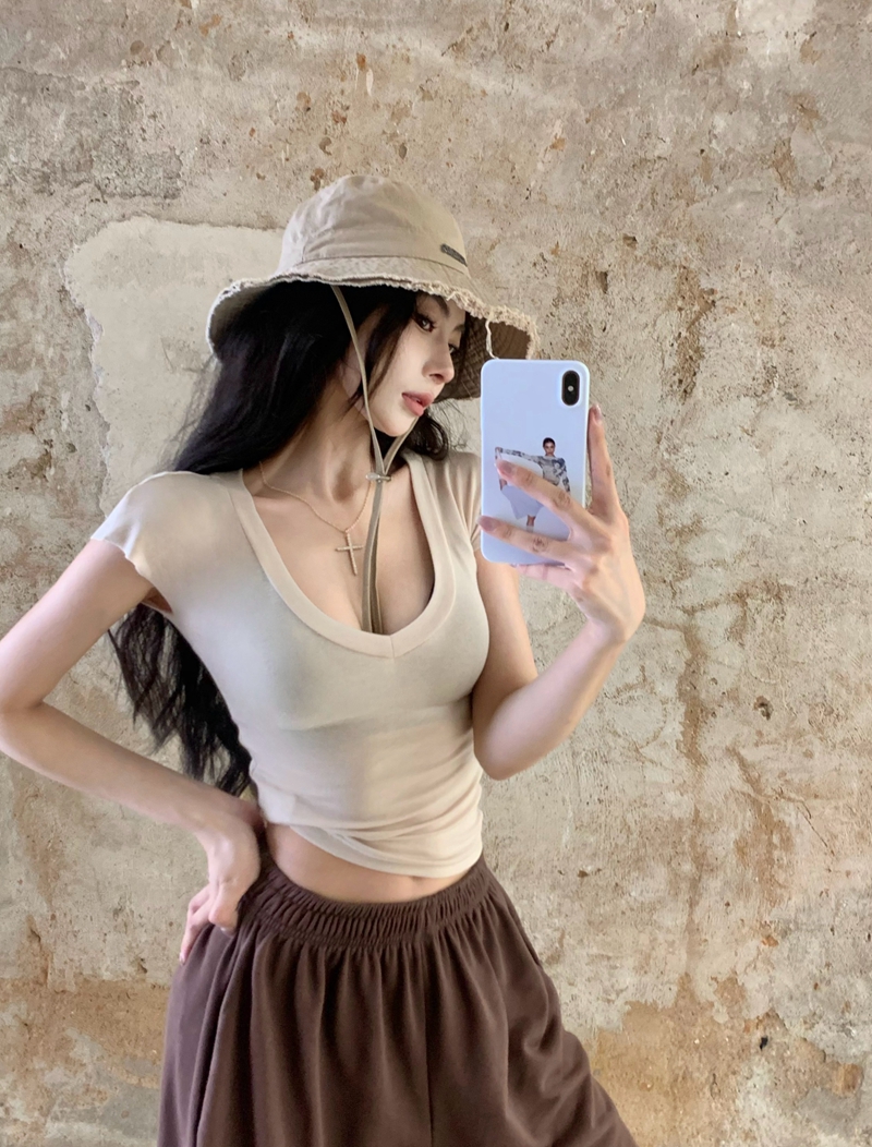 진짜 가격 여름 요정 작은 t 순수하고 얇은 v 넥 테니스 흰색 짧은 슬리브 티셔츠 짧은 탑