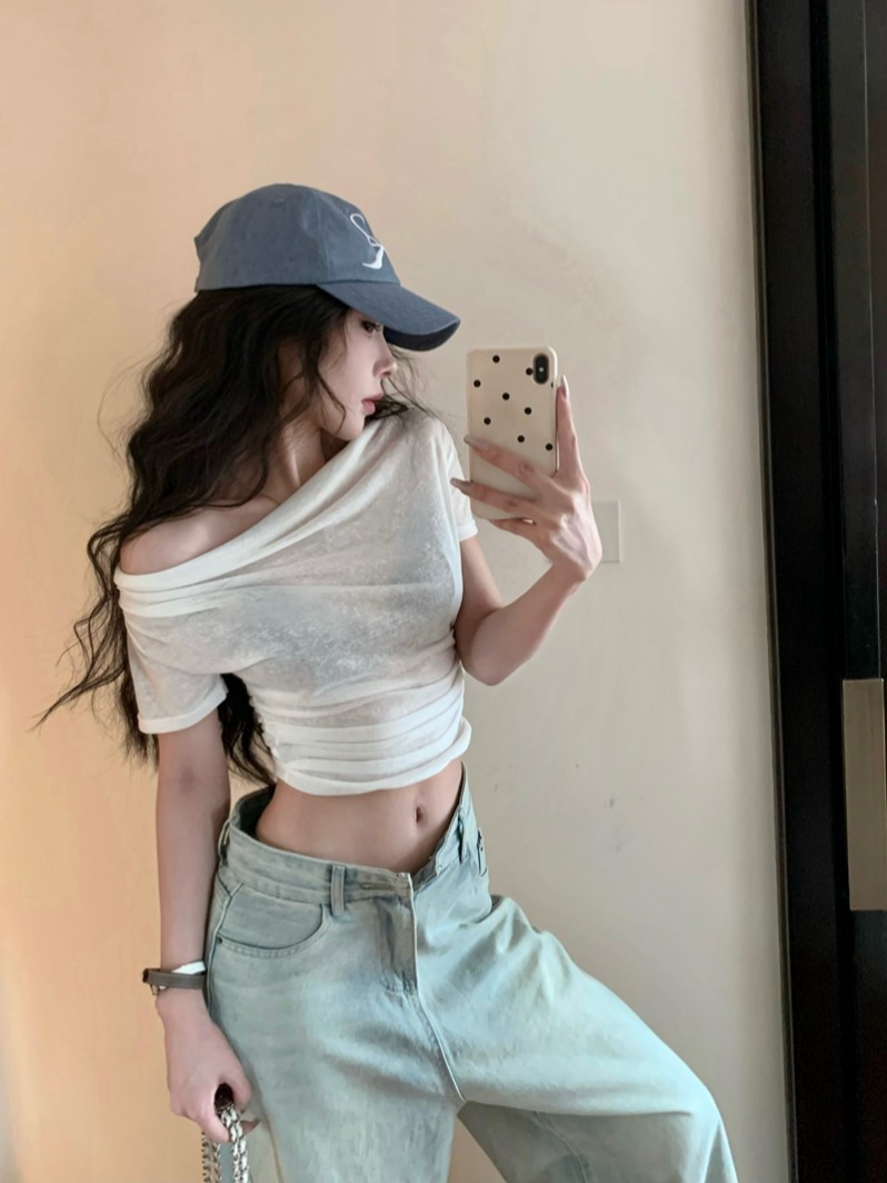 실제 가격 여름 순수한 관능 테니스 호기성 T- 콜라 니트 짧은 슬림 티셔츠 슬림 탑