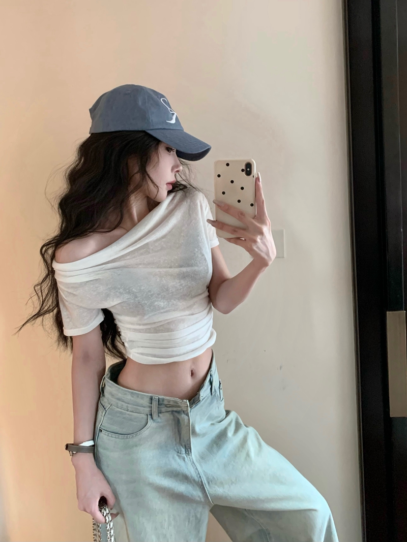 실제 가격 여름 순수 슬림 린넨 에어로빅 티-니트 짧은 슬림 티셔츠 슬림 탑