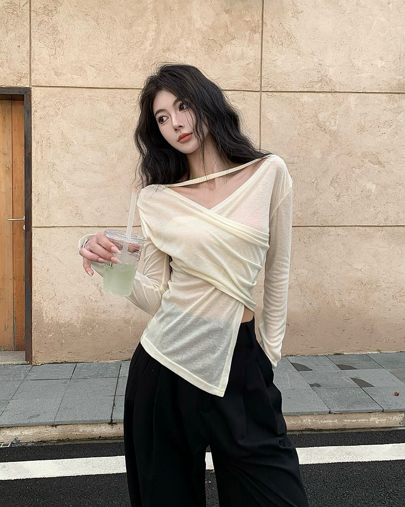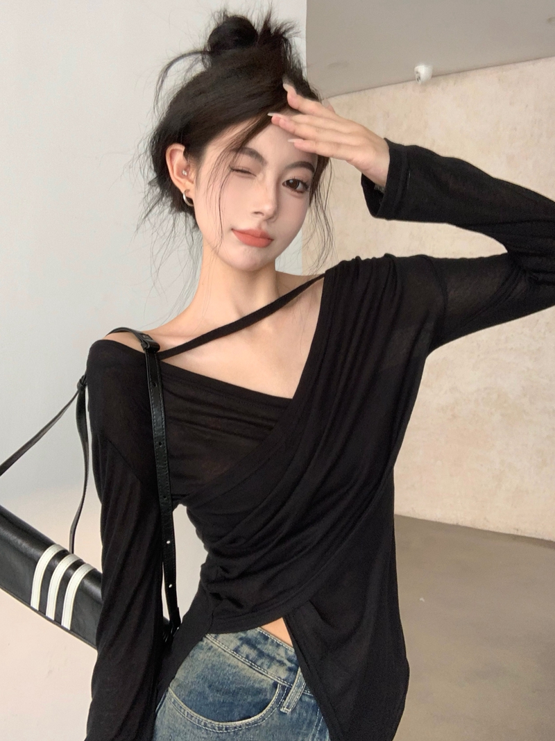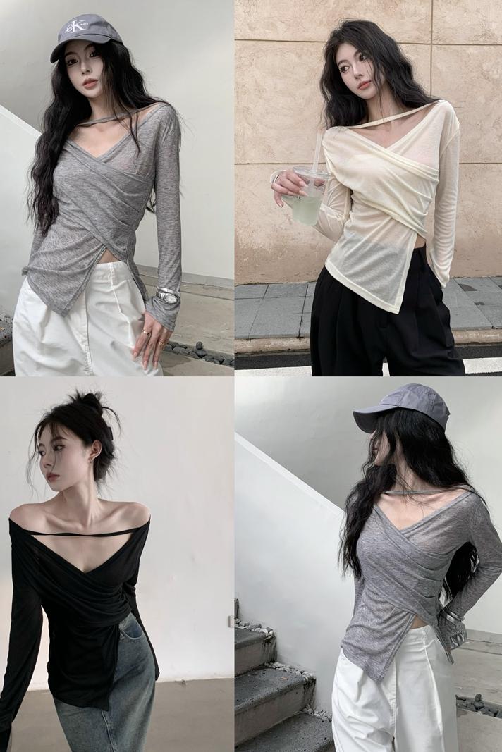 실제 사진과 실제 가격 순수한 섹시한 여자 스타일 디자인 얇은 슬림 긴 슬림 티셔츠 조명 및 얇은 태양 보호 탑