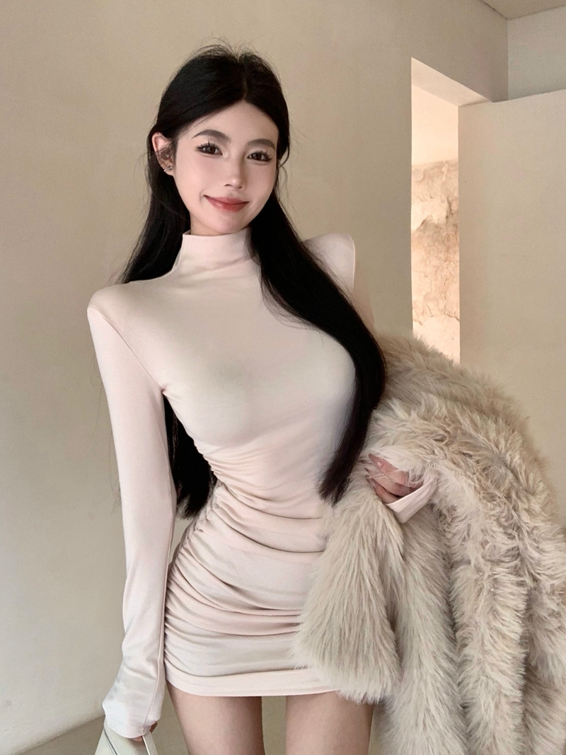 진짜 가격 겨울 순수한 섹시한 뜨거운 여자 스타일 슬림하고 벨벳 내부 하이 하이 목 힙 덮개베이스 드레스