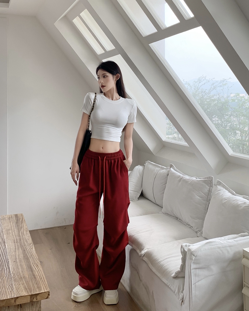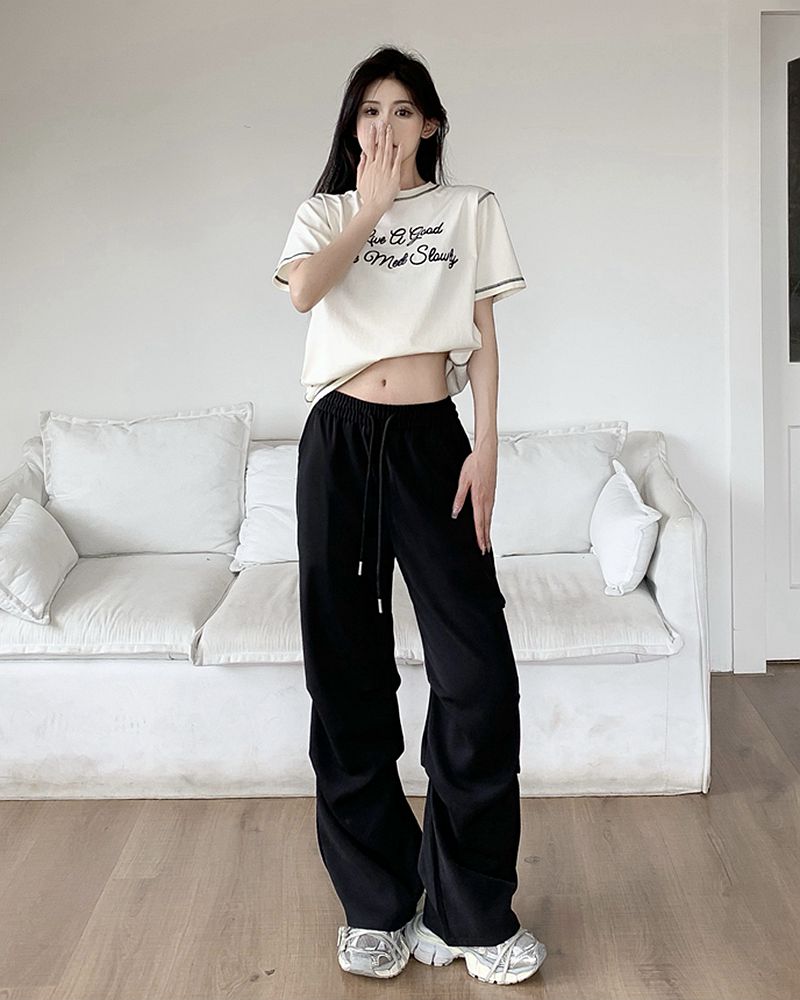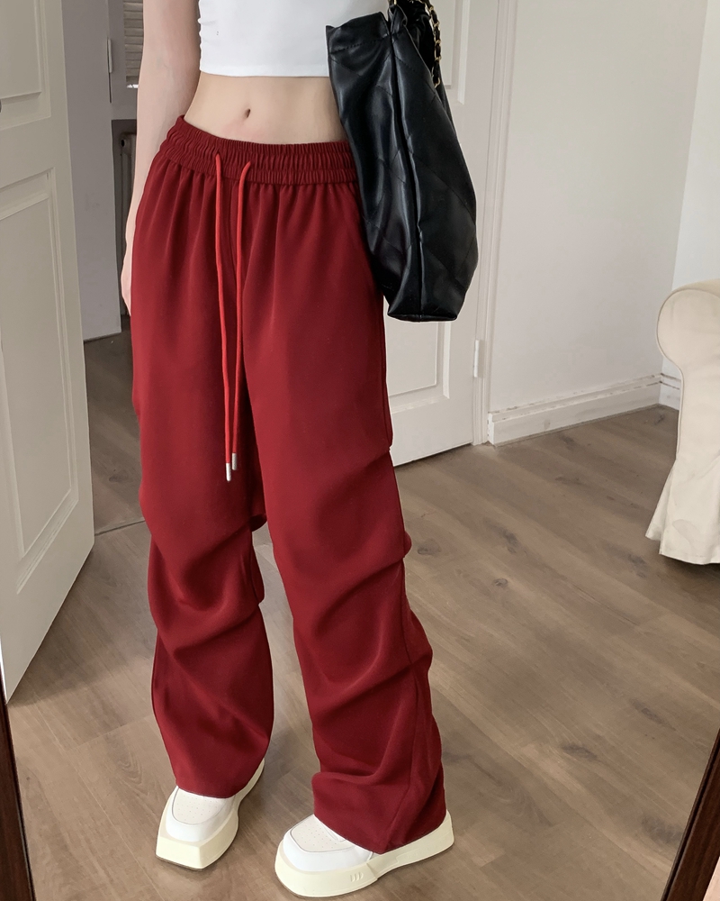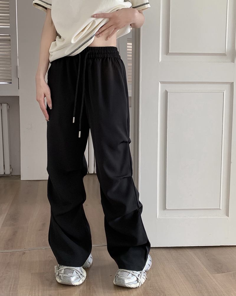 실제 가을 가을 낙하산 바지 주름진 드로 스트링 드레이프 넓은 다리 바지 남성과 여성 느슨한 스트레이트 캐주얼 바지 유행