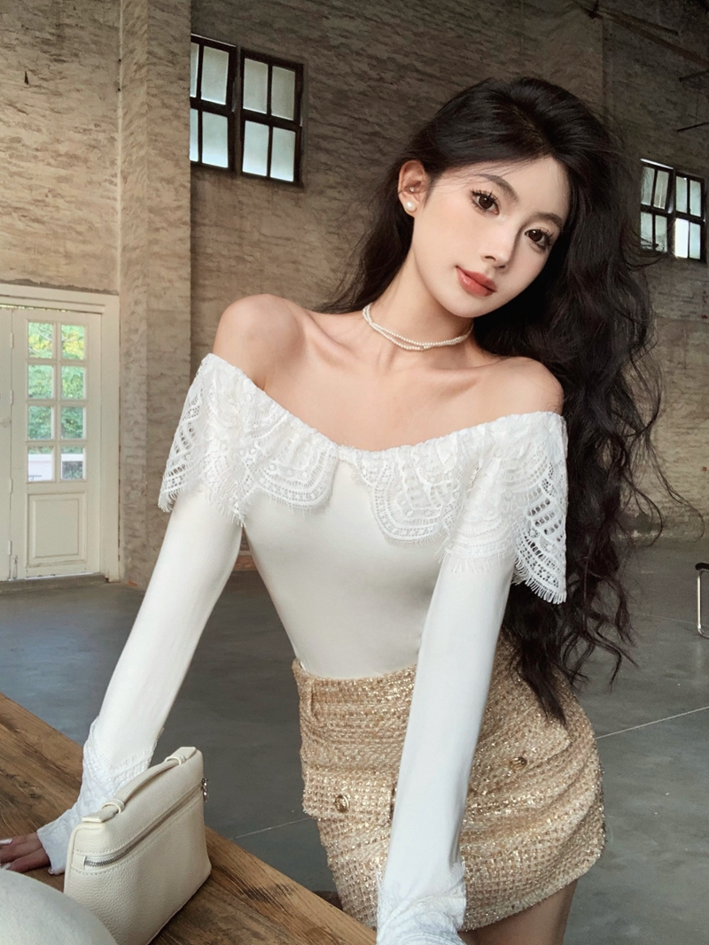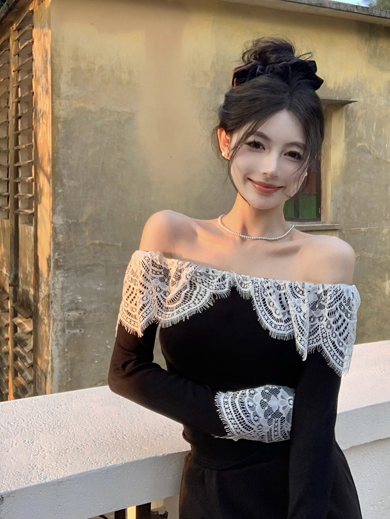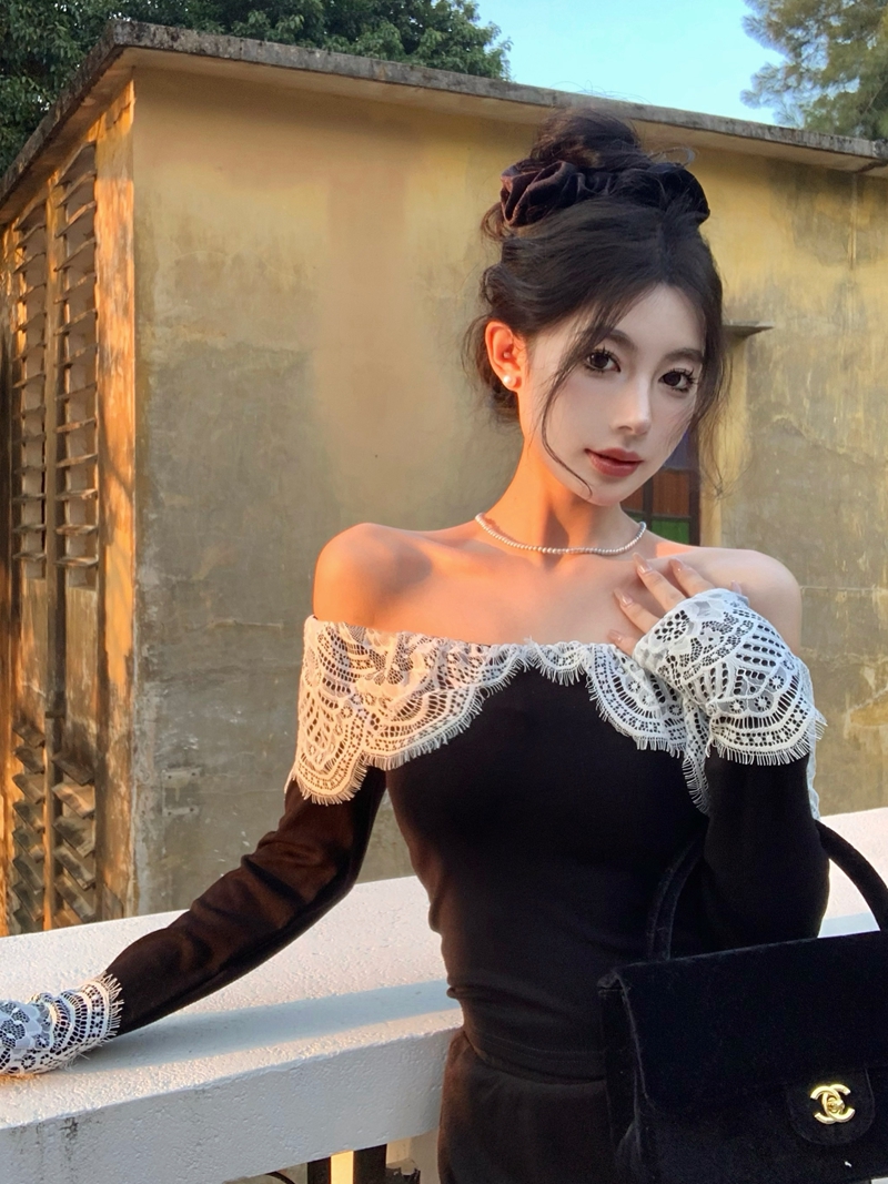 실제 가격의 프랑스 레트로 헵번 스타일 섹시한 원한 오프 숄더 레이스 레이스 속옷