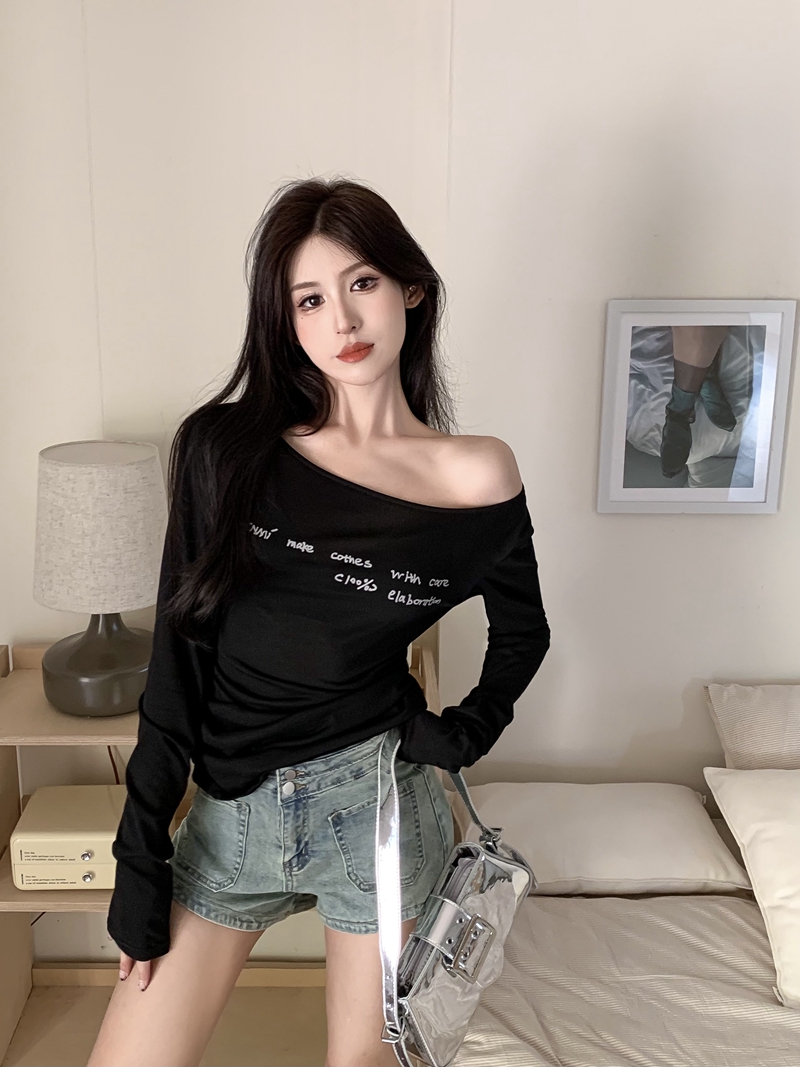 진짜 가격 여름 섹시한 순수하고 아름다운 편지 인쇄 얇은 1 길이 어깨 길이 긴팔 티셔츠 여자 태양 보호 탑