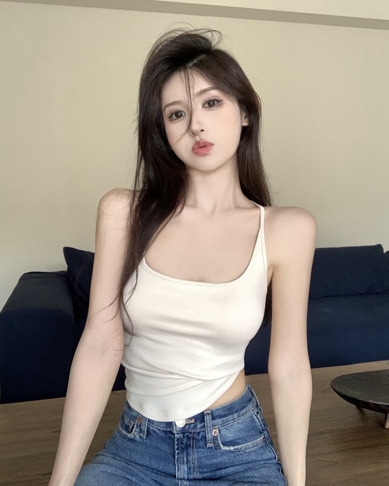 진짜 가격 미국 레트로 순수한 섹시한 여자 스타일 얇은 벨트 조끼 높은 탄성 슬림 슬림 슬링 탑