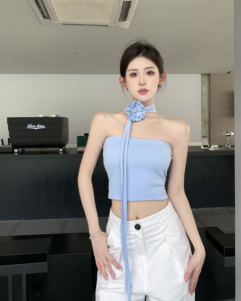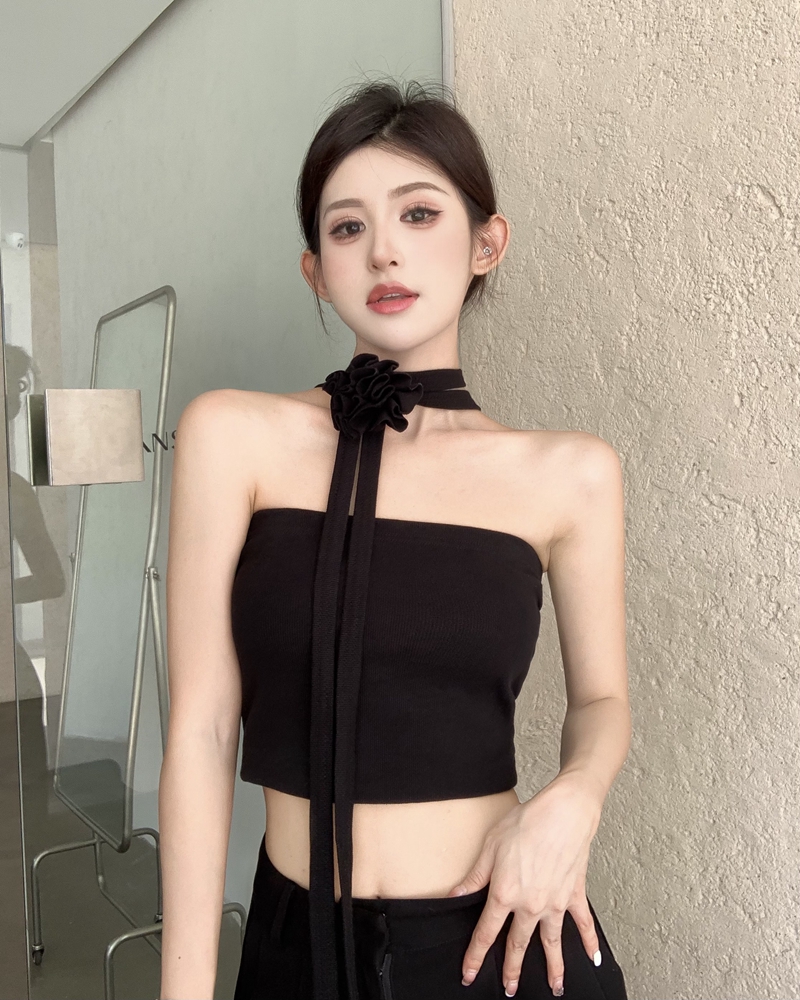 여름 핫 걸 스타일 고급 3 차원 꽃 스카프 슬림 탄성 슬림 끈이없는 조끼 여성 가슴 상단의 실제 사진