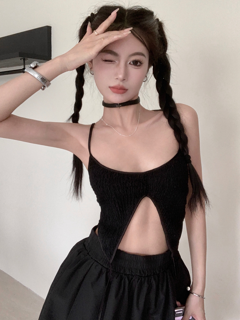여름에 섹시한 뜨거운 여자 스타일의 진짜 샷, 거꾸로, 2 피스 서스펜더 조끼 + 접힌 푹신한 치마 가짜 2 피스 치마 정장