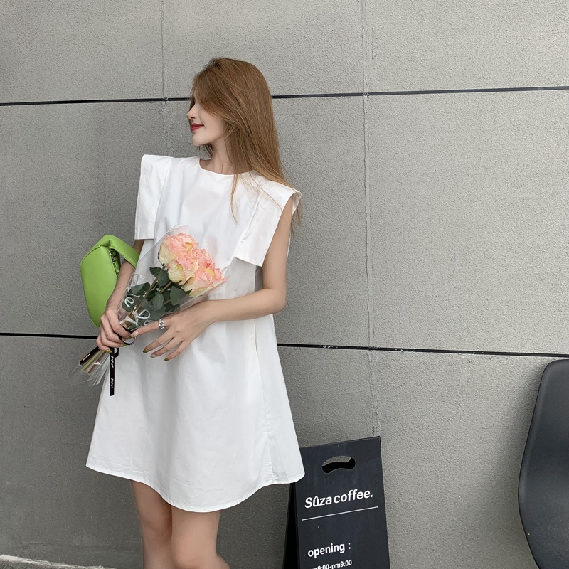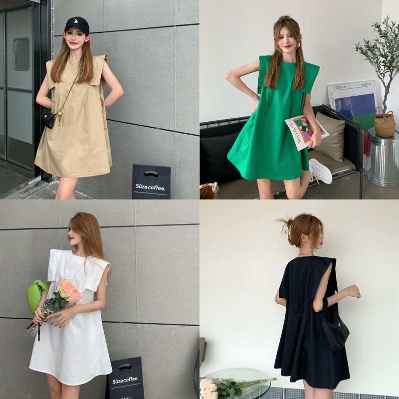 여름 사교계 스타일의 진짜 샷 얇은 느슨한 캐주얼 플라잉 슬리브 스커트 틈새 프렌치 레트로 드레스
