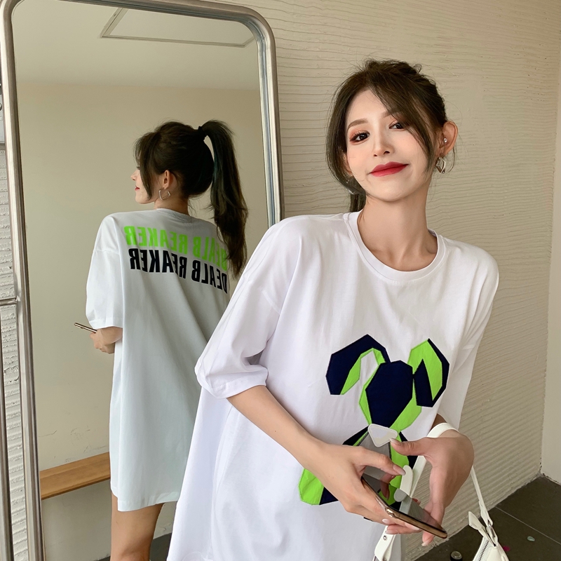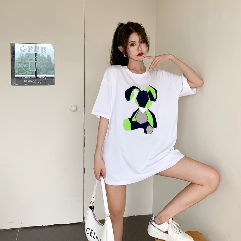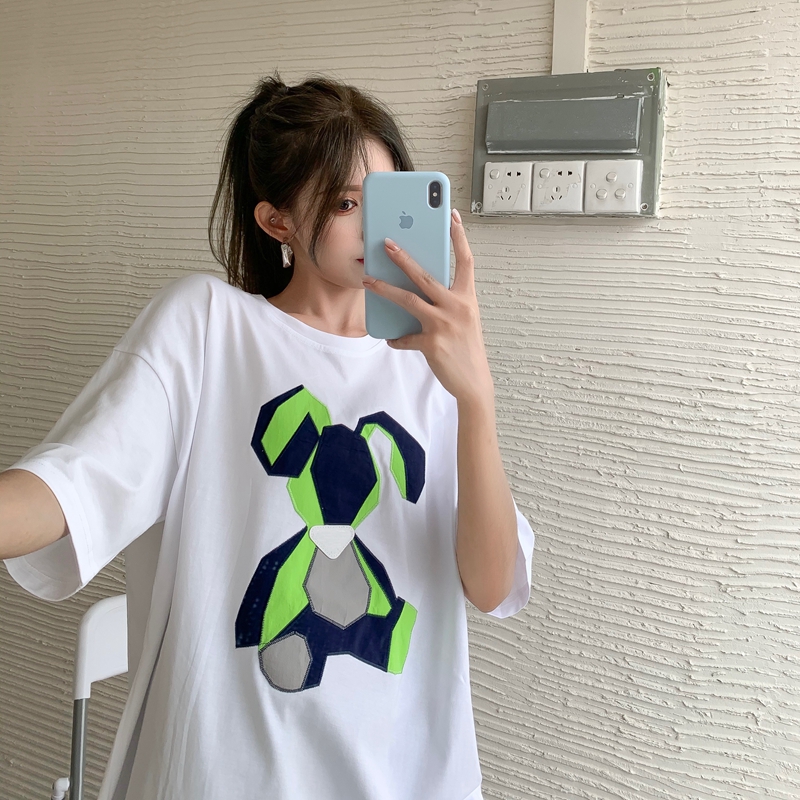 여름 홍콩 스타일의 패션 만화 캐주얼 다목적 토끼 창조적 인 반팔 티셔츠 in Top Trendy의 진짜 샷