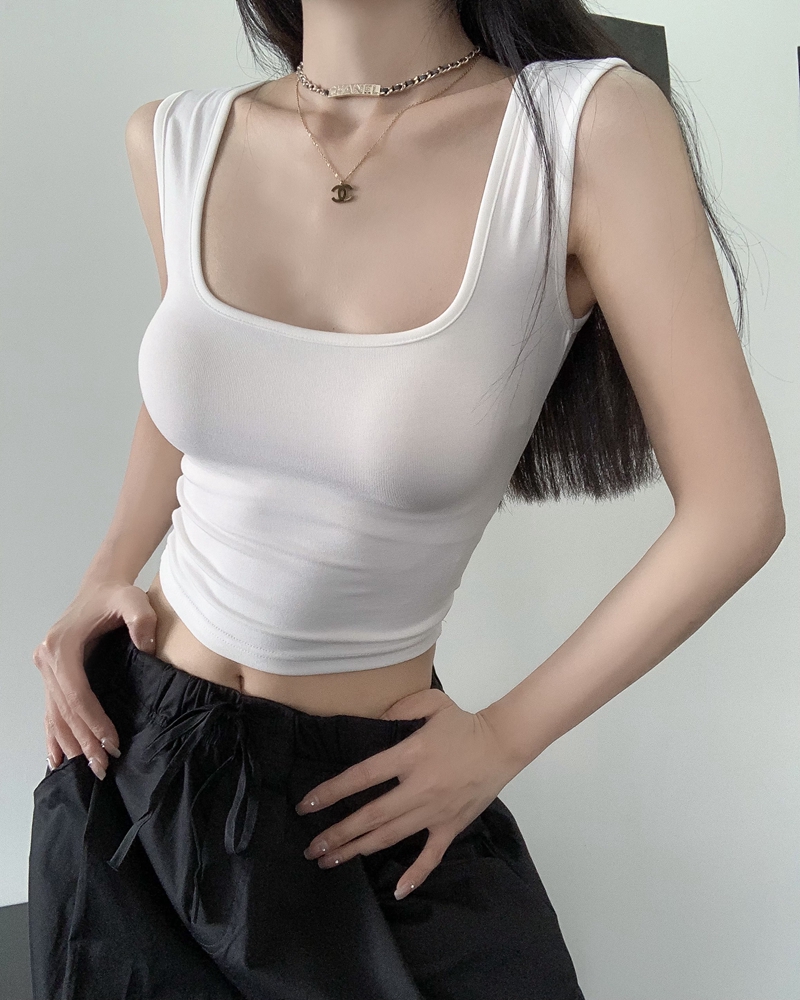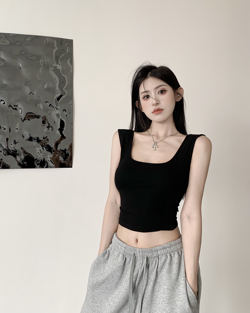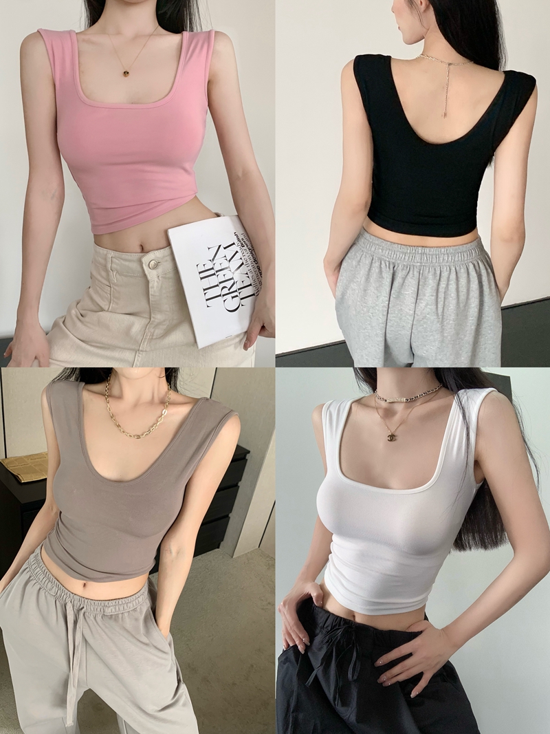 Hot Girl 스타일의 실제 샷 전면 및 뒷면 2 주간 슬림 정사각형 칼라 넓은 어깨 스트랩 커버 2 차 유방 스트랩 조끼 기본 탑