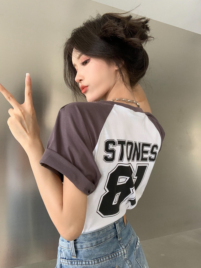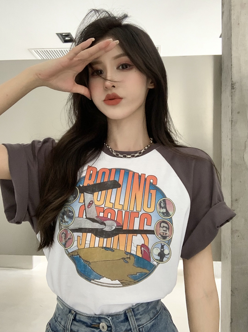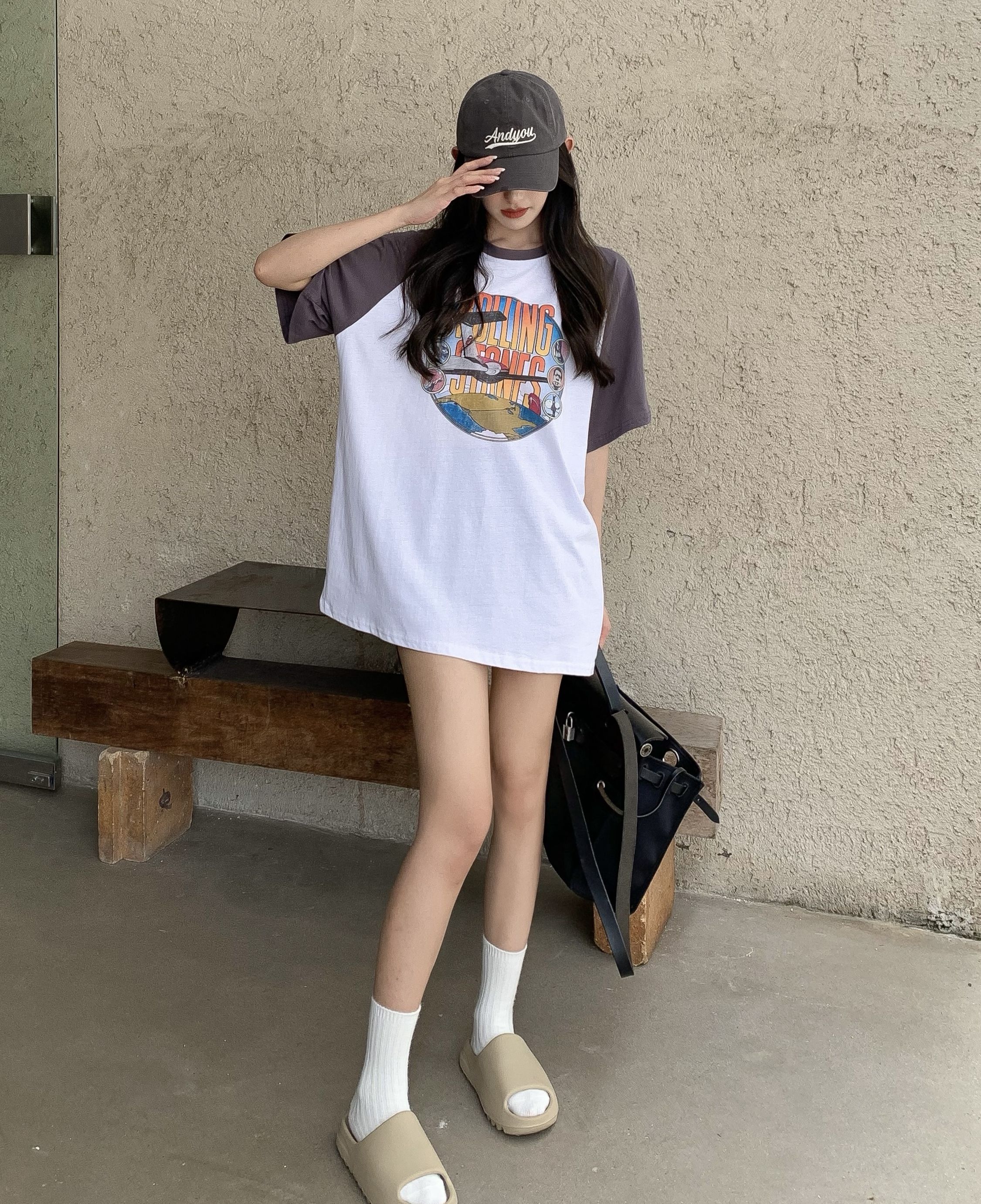 실제 수명 봄 홍콩 스타일의 편지 인쇄 만화 대조 컬러 라글란 슬리브 느슨