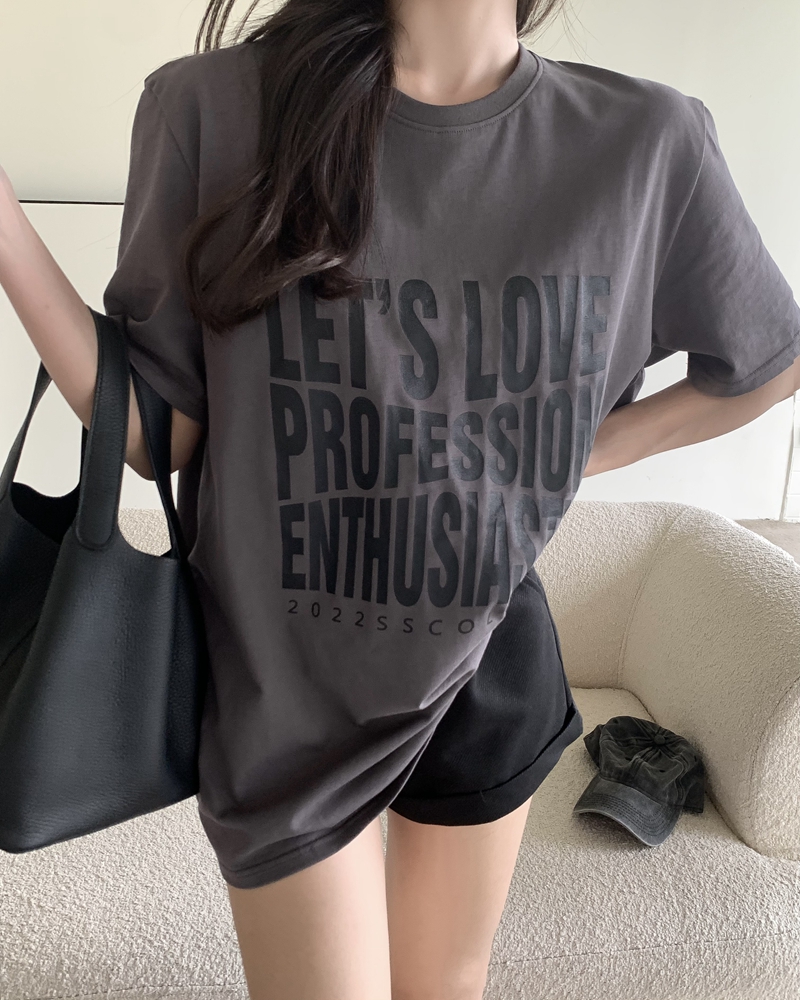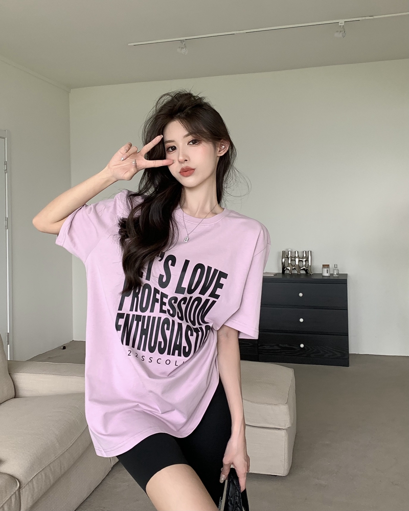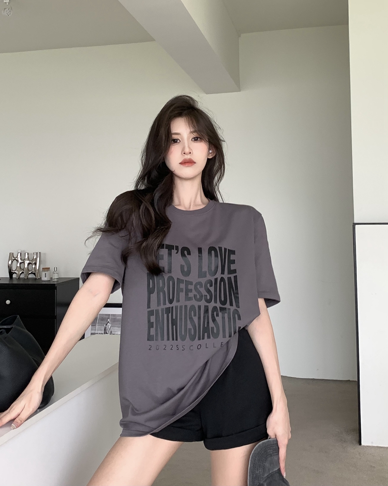 실제 경매 스프링 홍콩 스타일의 세련된 편지 인쇄 이중 원사 면화 시원한 느슨한 느슨한 짧은팔 셔츠 남자와 여자 Tops Trendy