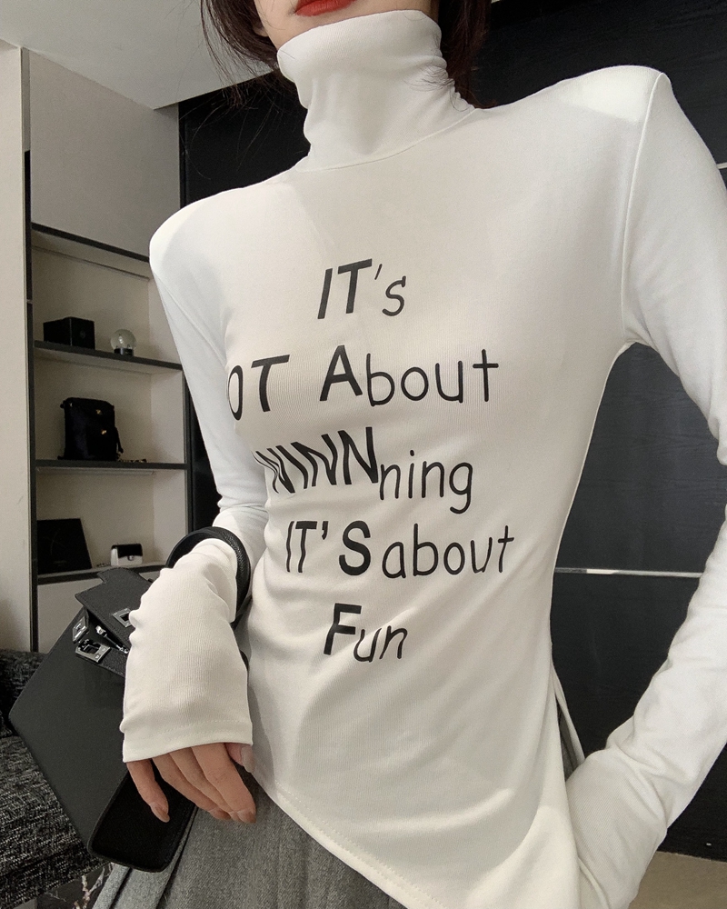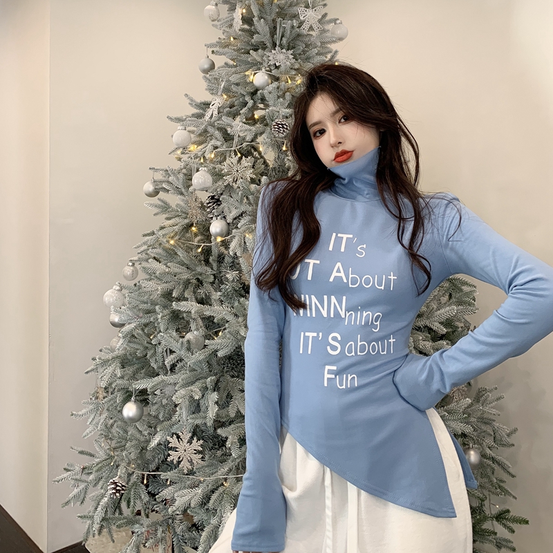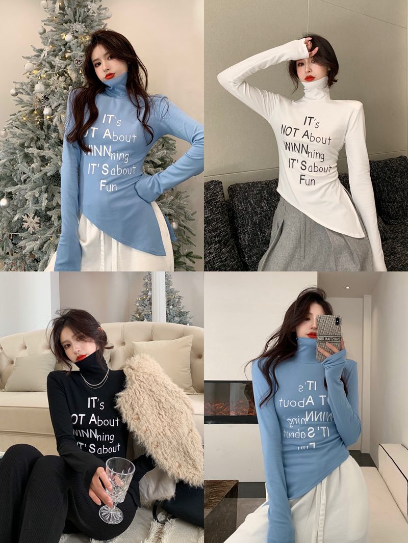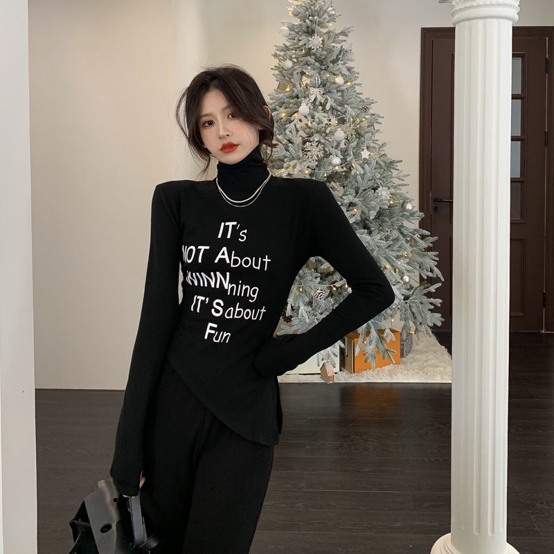 실제 사진 가을과 겨울 홍콩 스타일의 편지 인쇄 슬림 탄성 슬림하고 슬림 한 나사산 안쪽 착용 어깨 패드베이스 셔츠