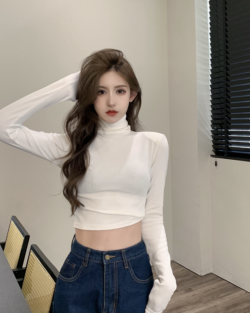 가을과 겨울의 부드러운 슬림 핏 슬림하고 모피 핏 내부 긴팔 티셔츠 꽉 짧은 터틀넥 어깨 패드베이스 셔츠