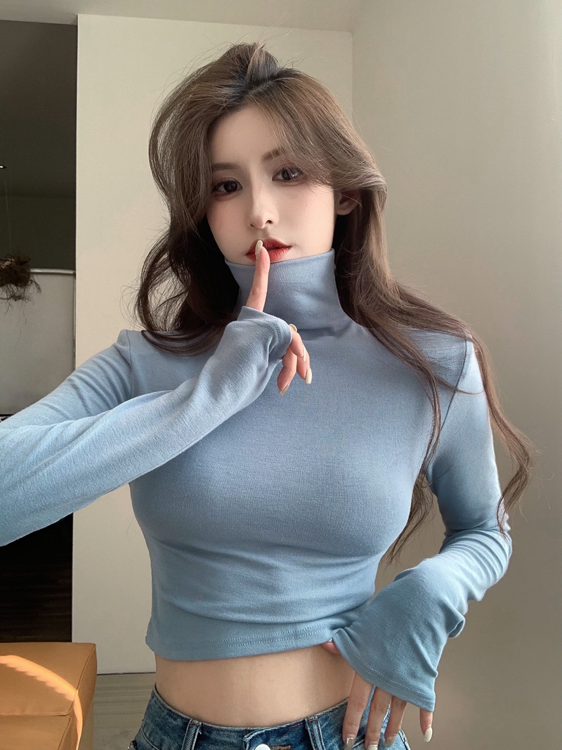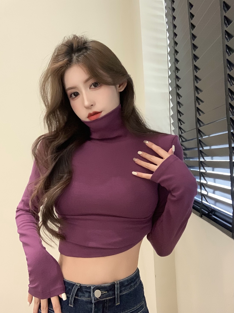 가을과 겨울의 부드러운 슬림 핏 슬림하고 모피 핏 내부 긴팔 티셔츠 꽉 짧은 터틀넥 어깨 패드베이스 셔츠