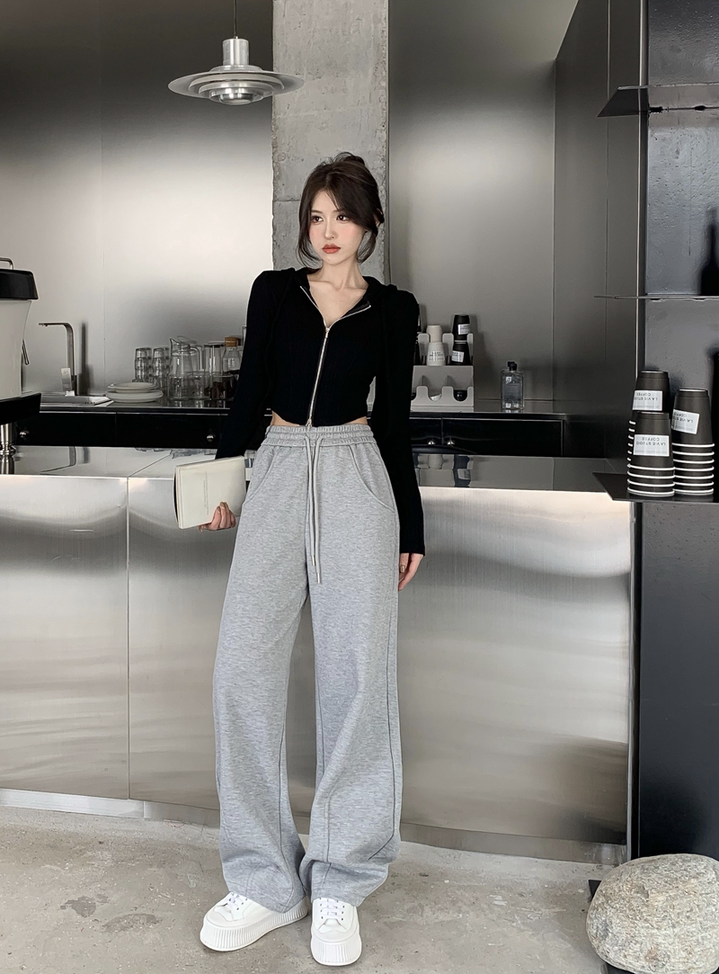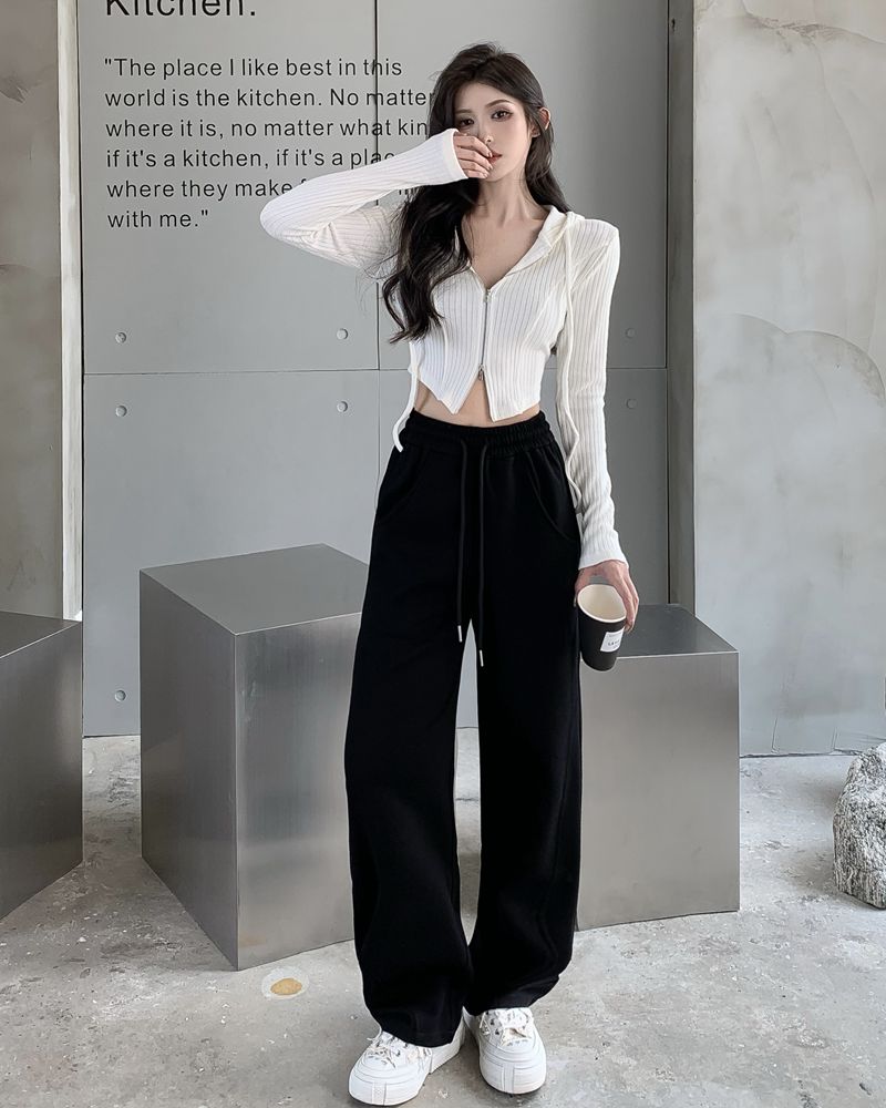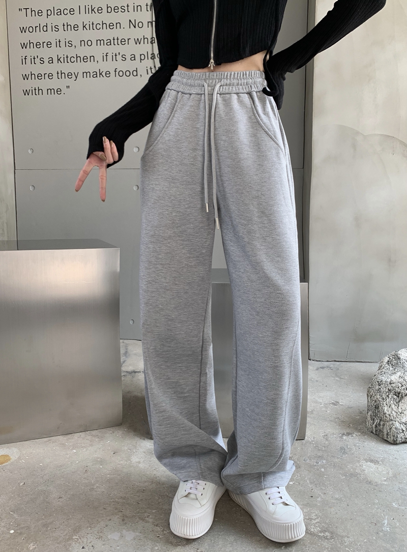 스프링 홍콩 스타일의 실제 사진은 느슨하고 꽉 꽉 허리 캐주얼 넓은 다리 바닥 바지 ins 높은 허리 처짐 스포츠 스웨트 스웨트 팬츠 트렌디