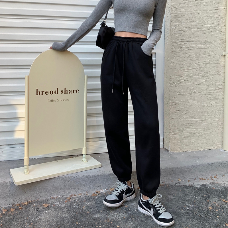 뉴 홍콩 스타일의 실제 사진은 느슨하고 슬림 한 발과 벨벳 스포츠 캐주얼 스웨트 팬츠 하렘 바지 트렌디