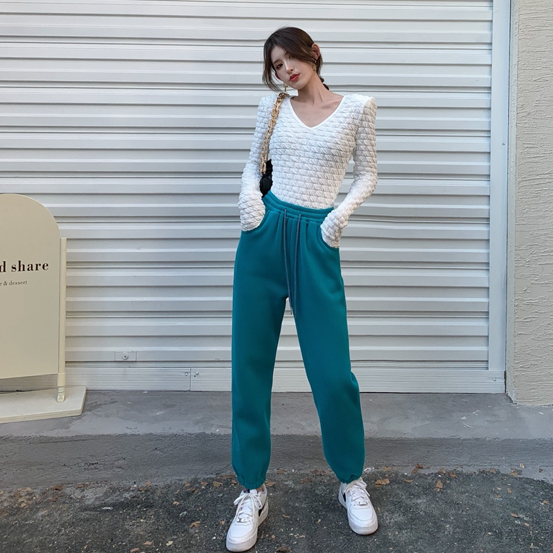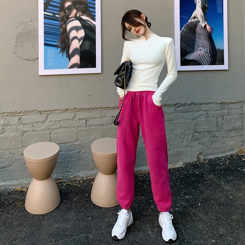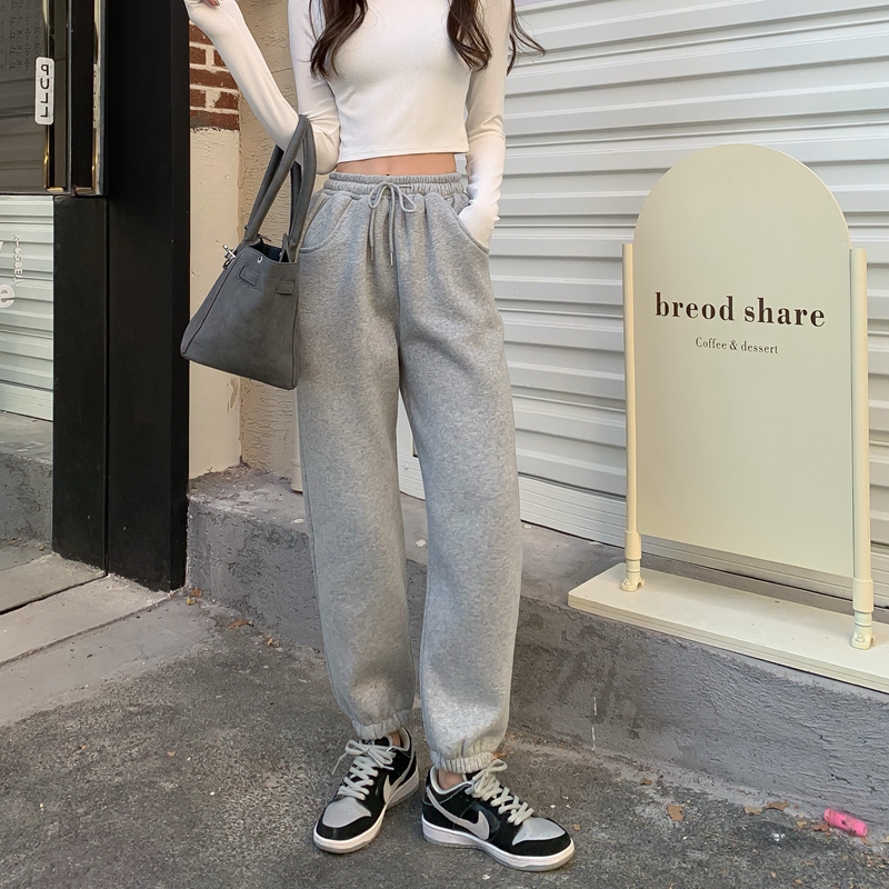 뉴 홍콩 스타일의 실제 사진은 느슨하고 슬림 한 발과 벨벳 스포츠 캐주얼 스웨트 팬츠 하렘 바지 트렌디