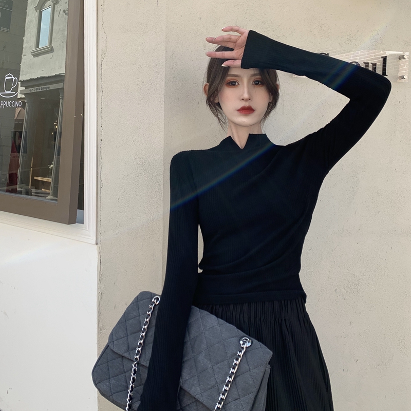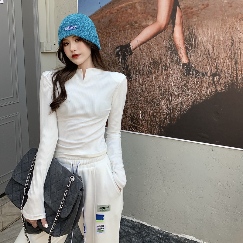 실제 홍콩 스타일 가을과 겨울 스타일 달콤하고 다재다능한 터틀넥 두꺼운 따뜻한 어깨 패드 안쪽 하단 셔츠 탑