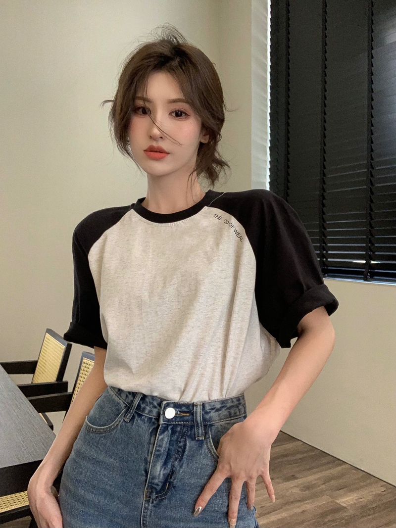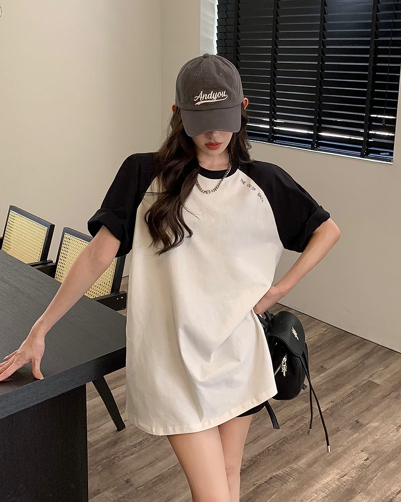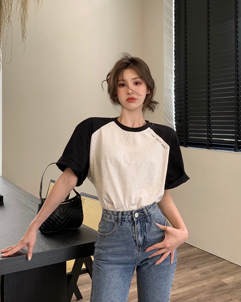 새로운 홍콩 스타일의 진짜 샷 간단한 편지 스 플라이 싱 대비 컬러 ragdoll 슬리브 느슨