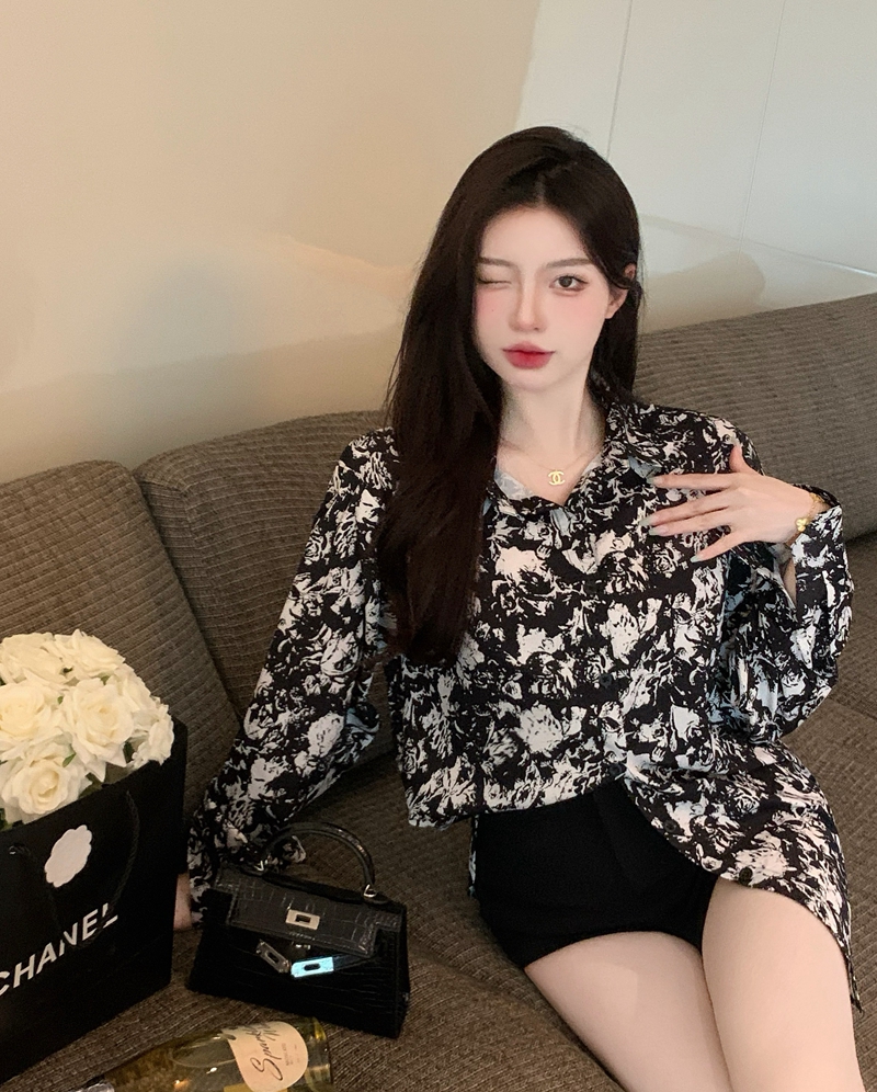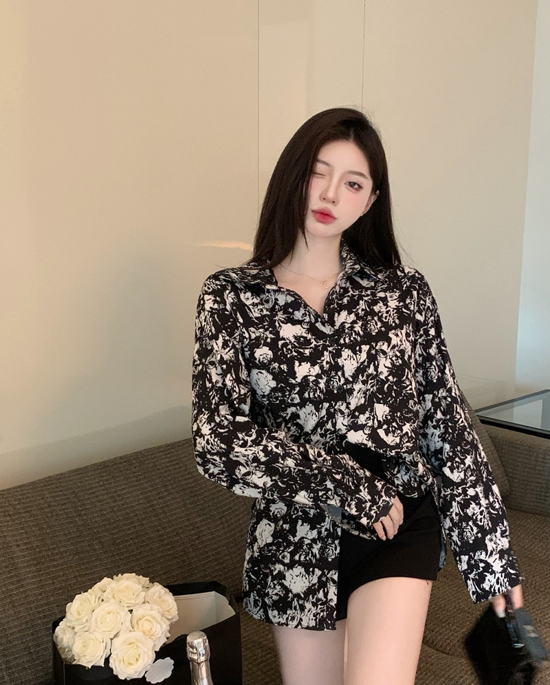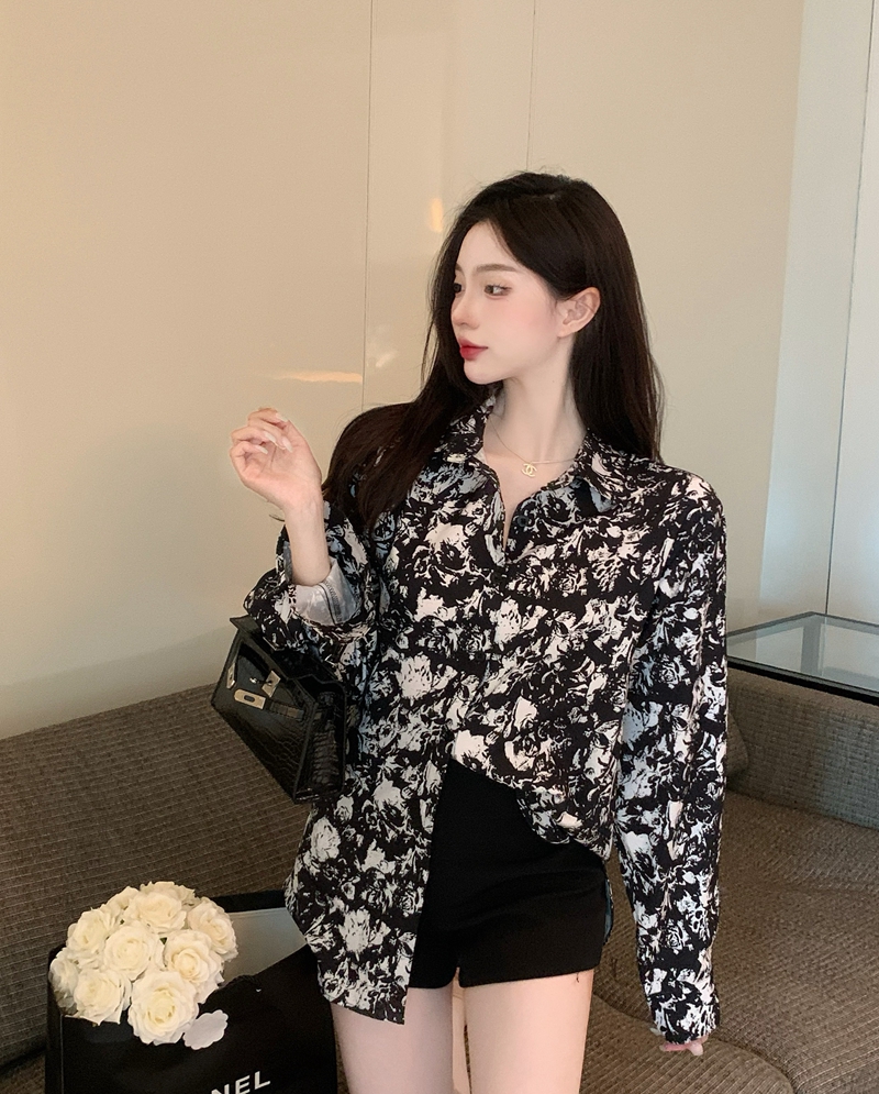 여름 프랑스 장미 꽃 프린트 느슨한 긴팔 쉬폰 선 스크린 셔츠 ins 얇은 처진 상단의 실제 사진