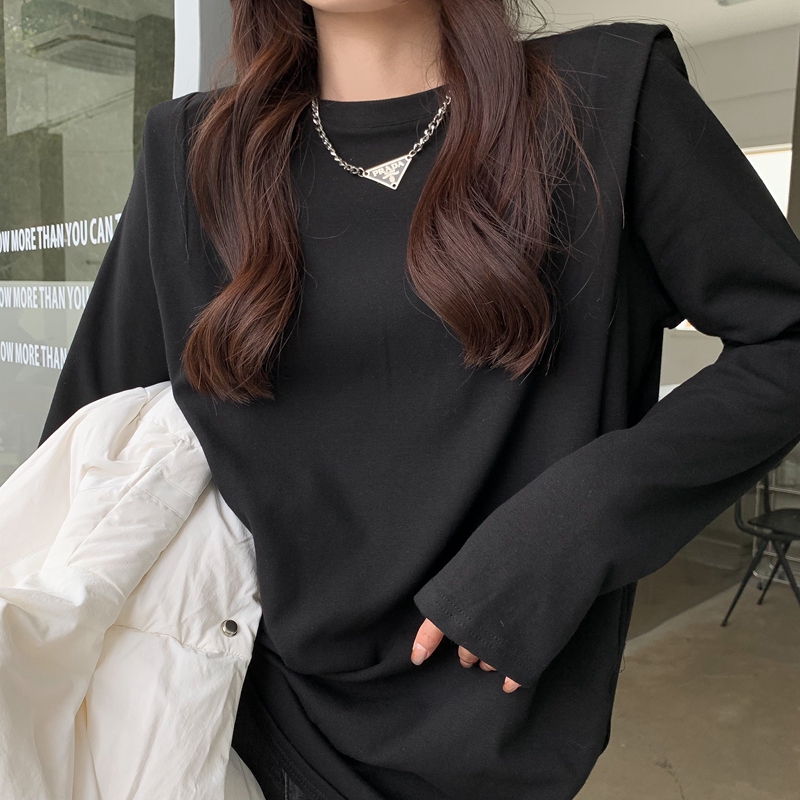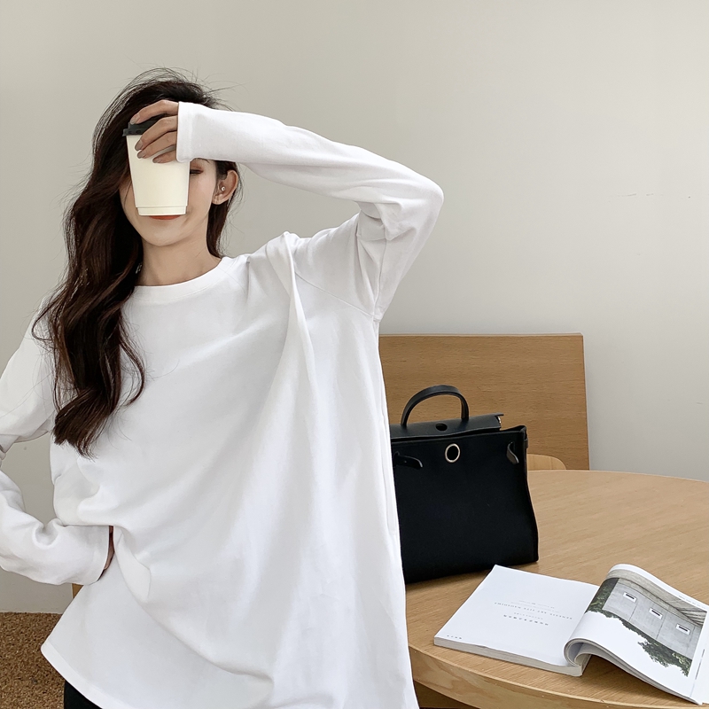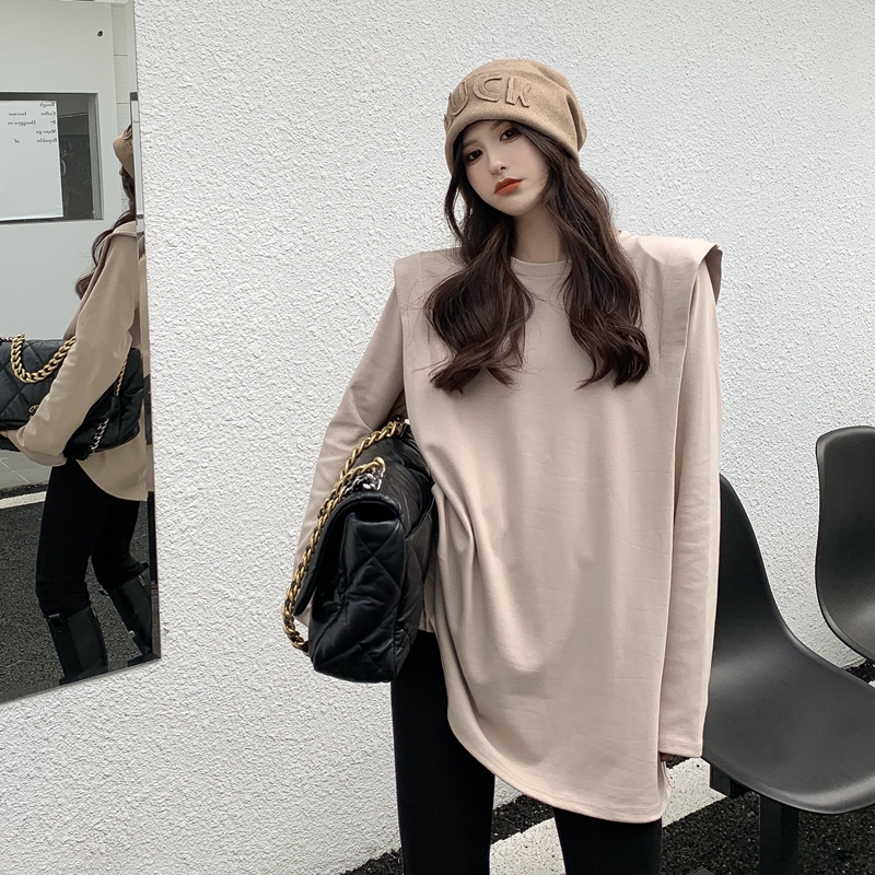 실제 사진, 가을과 겨울, 홍콩 스타일 디자인, 느슨하고 두꺼운 중간 길이의 티셔츠, 마모, 모피 화이트 숄더 패드,베이스 탑