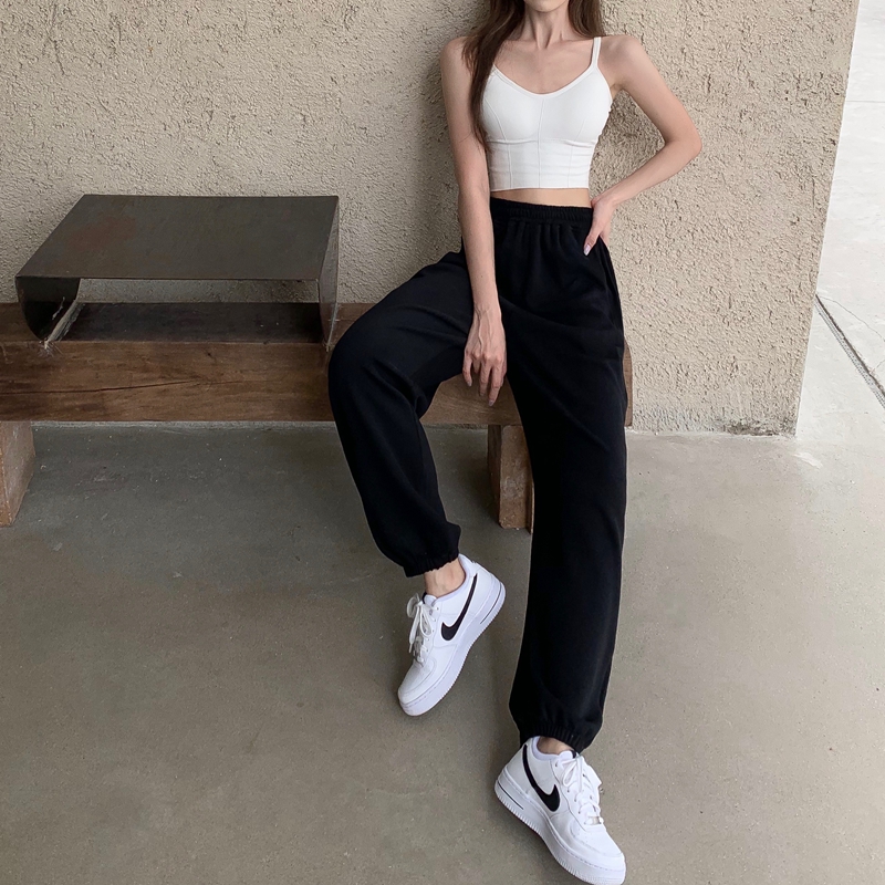 실제 홍콩 스타일의 가을 회색 스포츠 바지 남성과 여성을위한 하이 허리 묶음 바지 느슨한 캐주얼 스웨트 셔츠와 바지 트렌디하고 얇은 스타일/일반