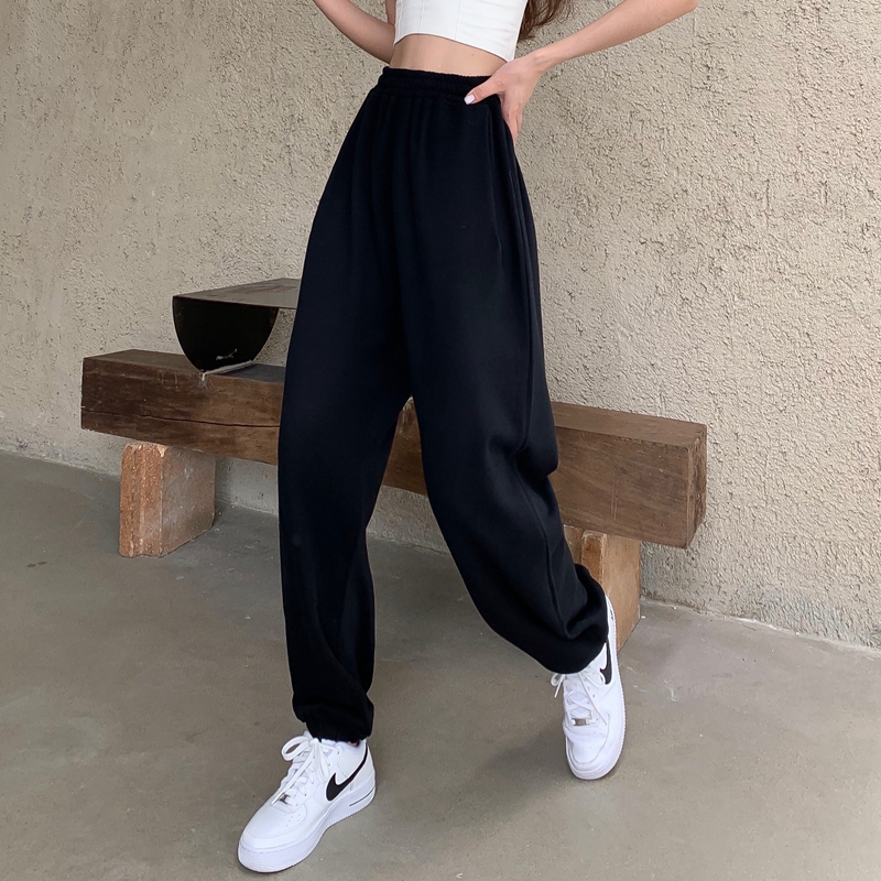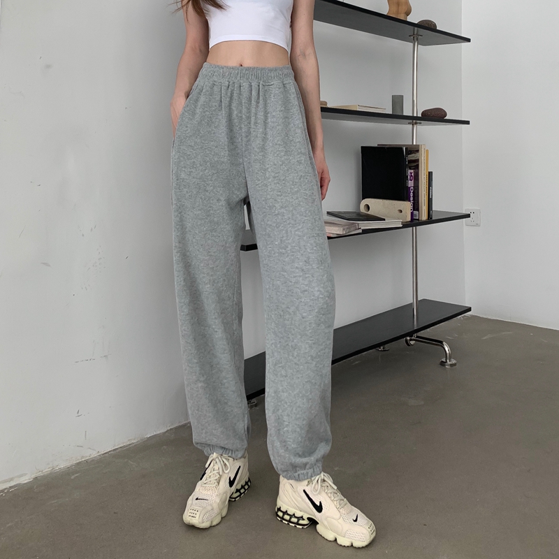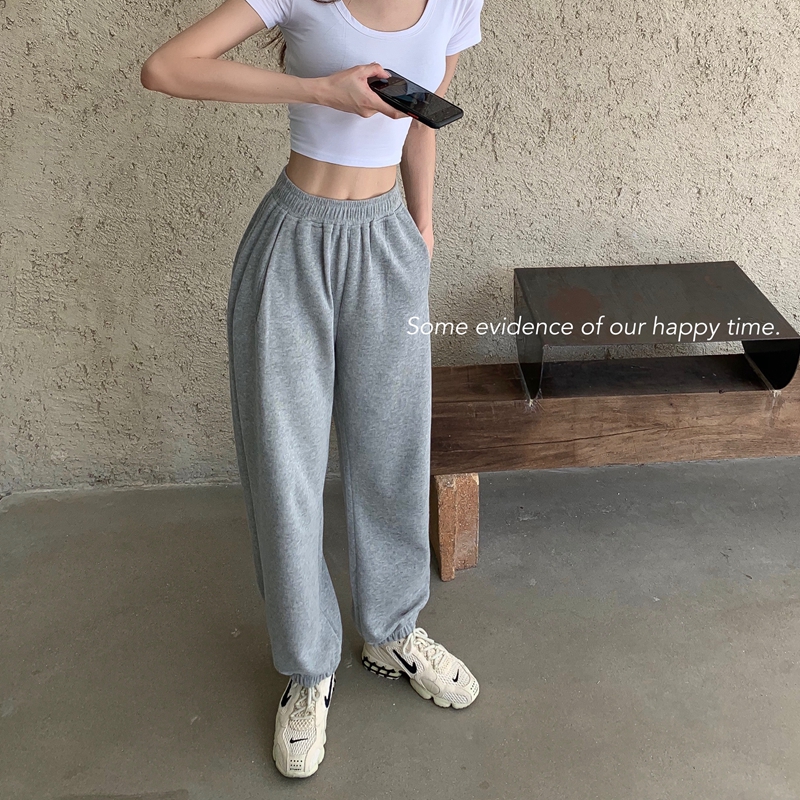 실제 홍콩 스타일의 가을 회색 스포츠 바지 남성과 여성을위한 하이 허리 묶음 바지 느슨한 캐주얼 스웨트 셔츠와 바지 트렌디하고 얇은 스타일/일반