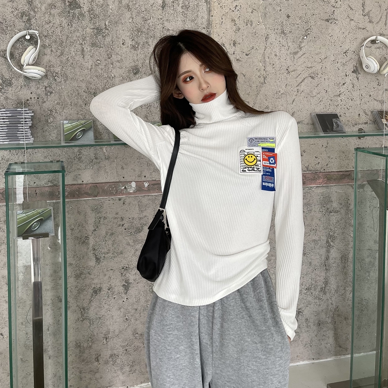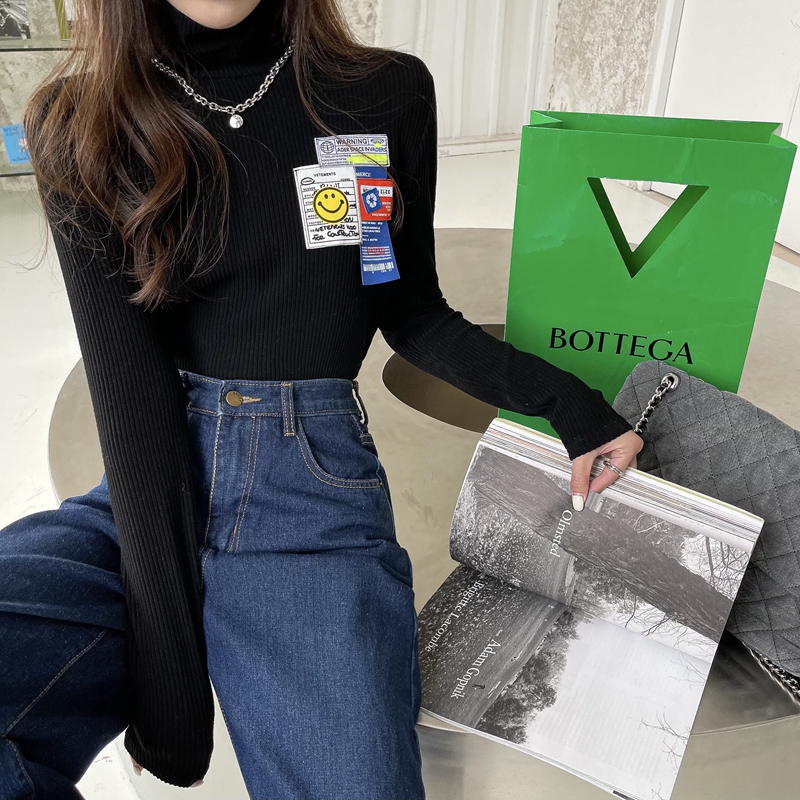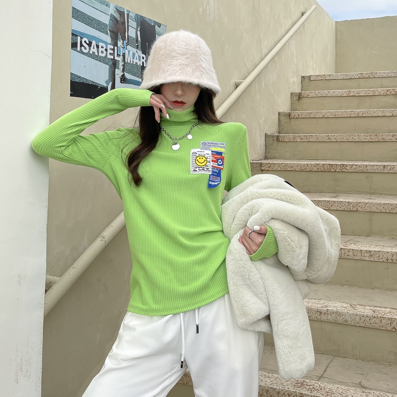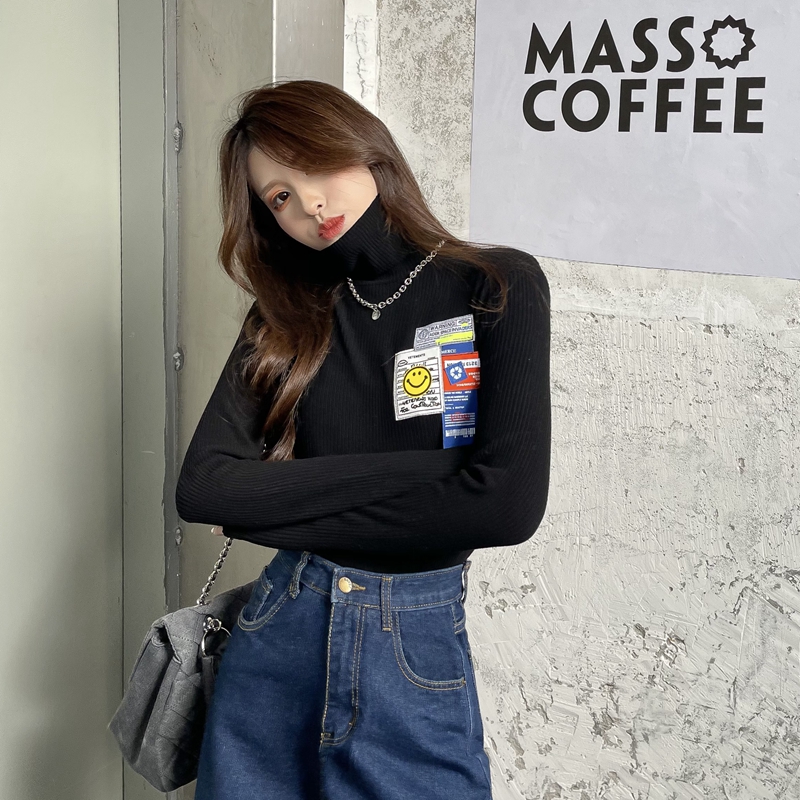 실제 새로운 스타일 홍콩 스타일 스타일 스타일 스타일의 겨울, 짙은 따뜻한 하이 넥 내부 셔츠 셔츠 탑 트렌디