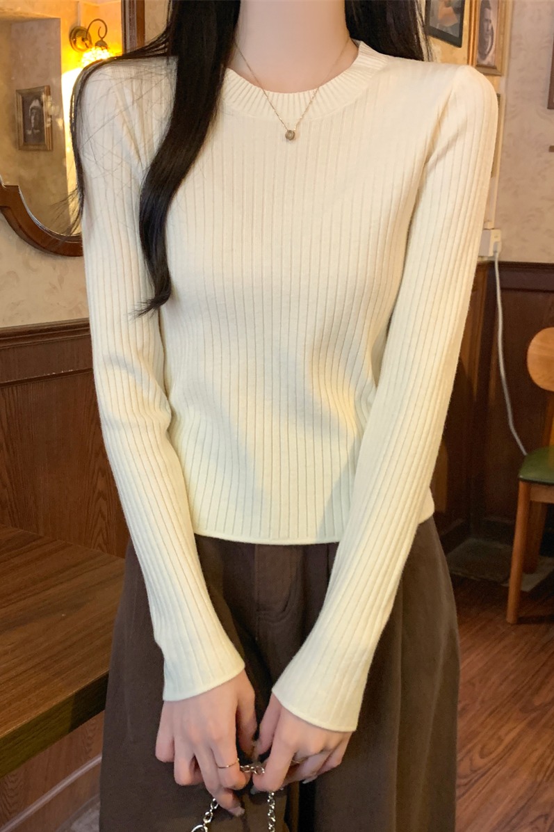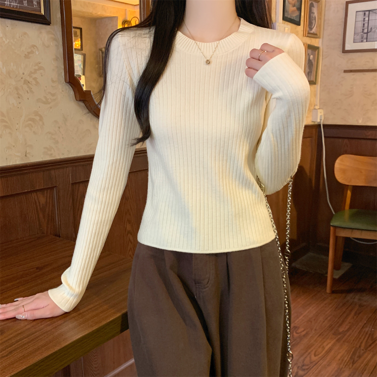 실제 사진과 실제 가을 가을 한국 스타일 디자인은 둥근 둥근 목 앤디 벨벳 슬림베이스 셔츠 니트 긴팔 탑