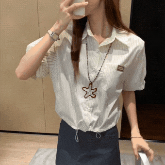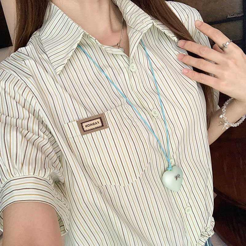 수직 스트라이프 셔츠 여성 2025 여름 디자인 틈새 틈새 셔츠 가디건 전면 어깨 녹색 짧은