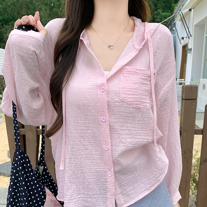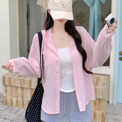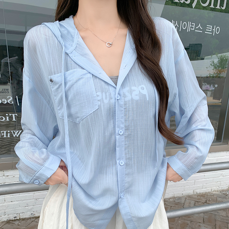 실제 샷과 실제 가격 #마이크로 트랜스 펜트 후드 선 스크린 셔츠 여성을위한 2025 여름 고급 룩 느슨한 가디건 탑