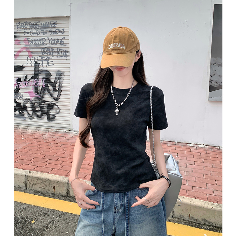 실제 샷과 실제 가격 #세척 및 중고 여름에 여성을위한 오래된 어깨 단축 티셔츠 2025 New Style 독특한 Top Trendy
