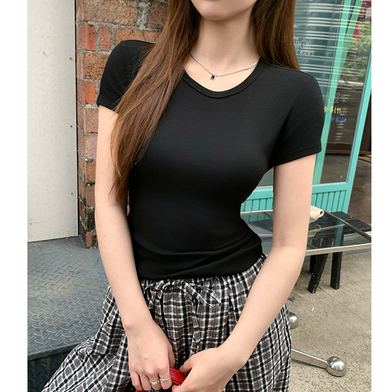 실제 샷 및 실제 가격# 라운드 넥 단석 장점 티셔츠 2025 여름 새로운 기본 슬림 핏 슬림 어깨 티셔츠 탑 트렌디