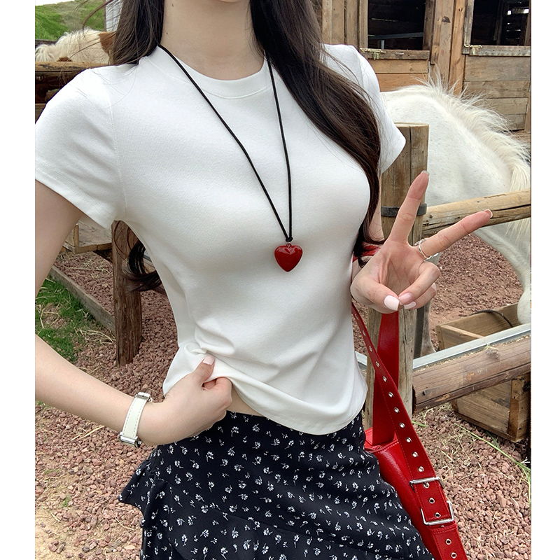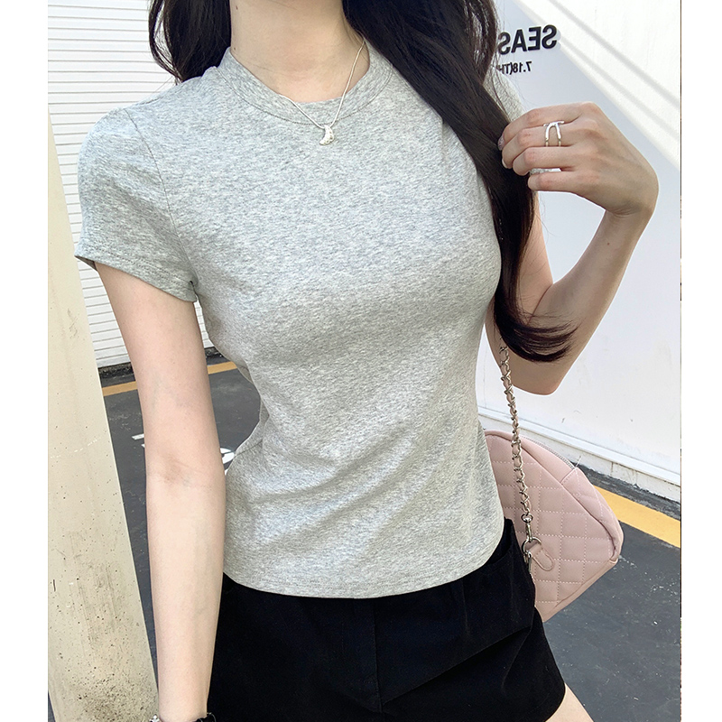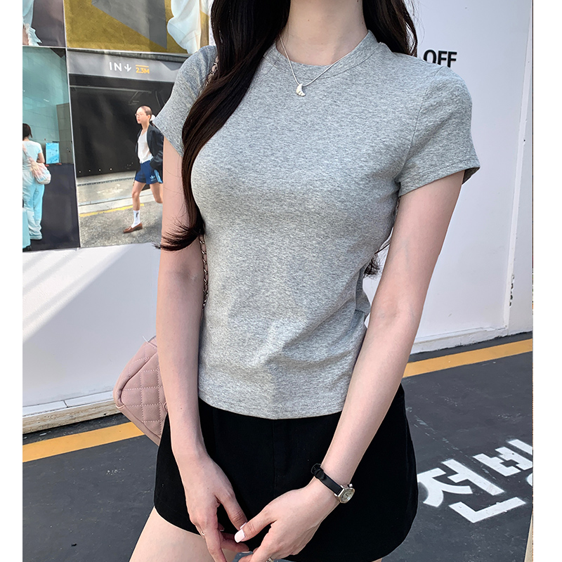 여름에 여성을위한 실제 가격 전면 어깨 단락 티셔츠 2025 여성을위한 새로운 다목적 기본 슬림 딱지 짧은 탑