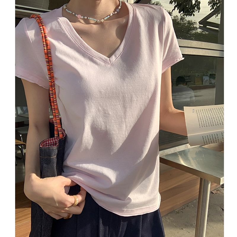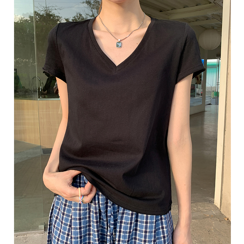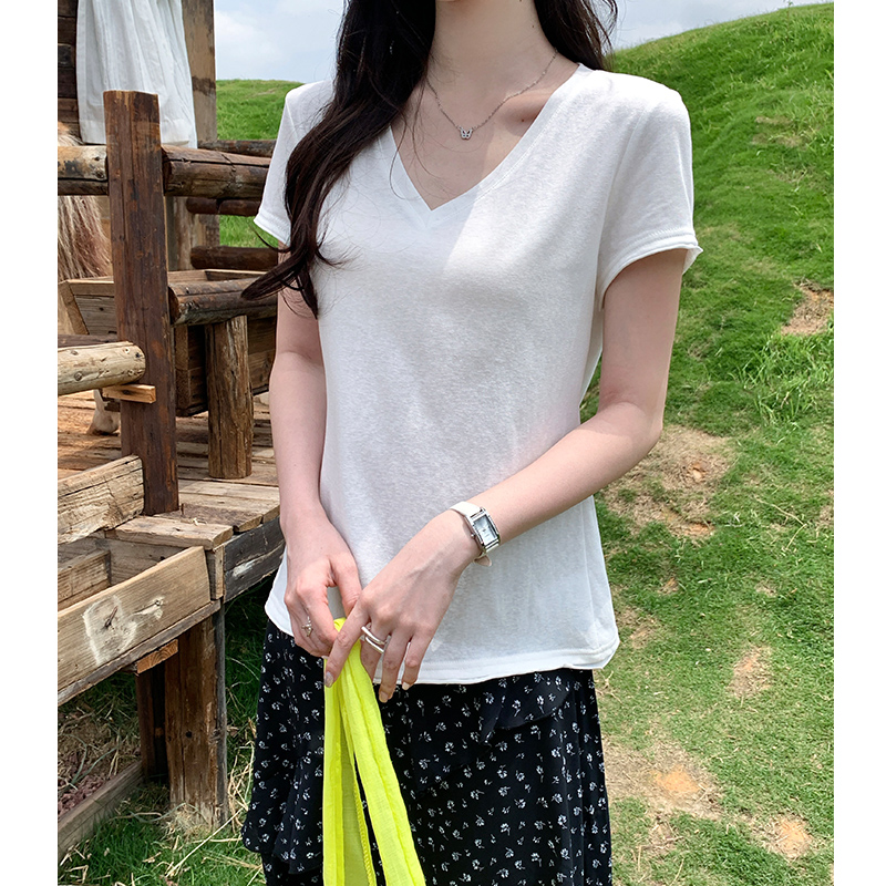 실제 가격#아이스 실크 프론트 어깨 어깨 단락 티셔츠 여성용 얇은 여름 2025 새로운 느슨한 슬림 다목적 탑 반 소매