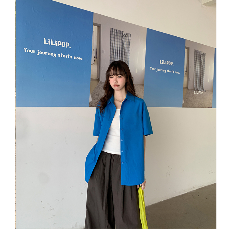 여름에 여성을위한 전선 어깨 단락 셔츠 2025 새로운 캐주얼 셔츠 가디건 슬림하고 느슨한 반팔 탑