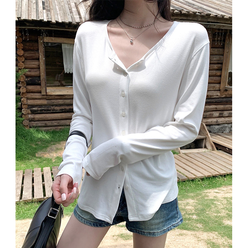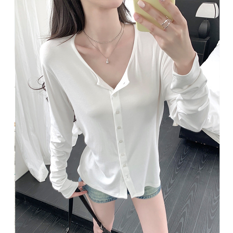 여성용 여름을위한 얇은 선 스크린 긴팔 티셔츠 2025 새로운 가디건베이스 셔츠 단색 기본 탑