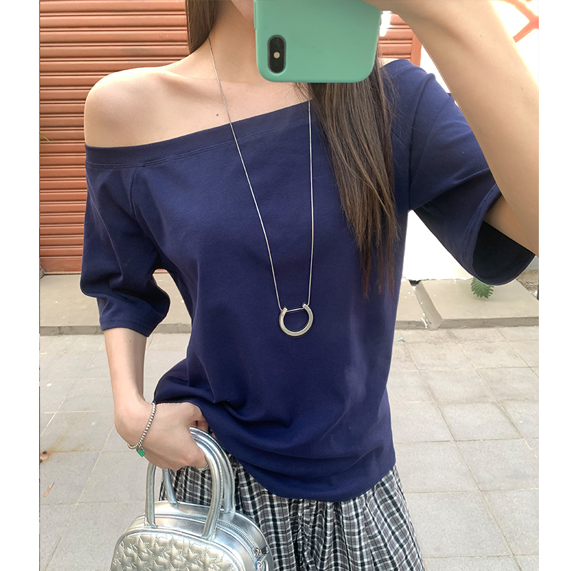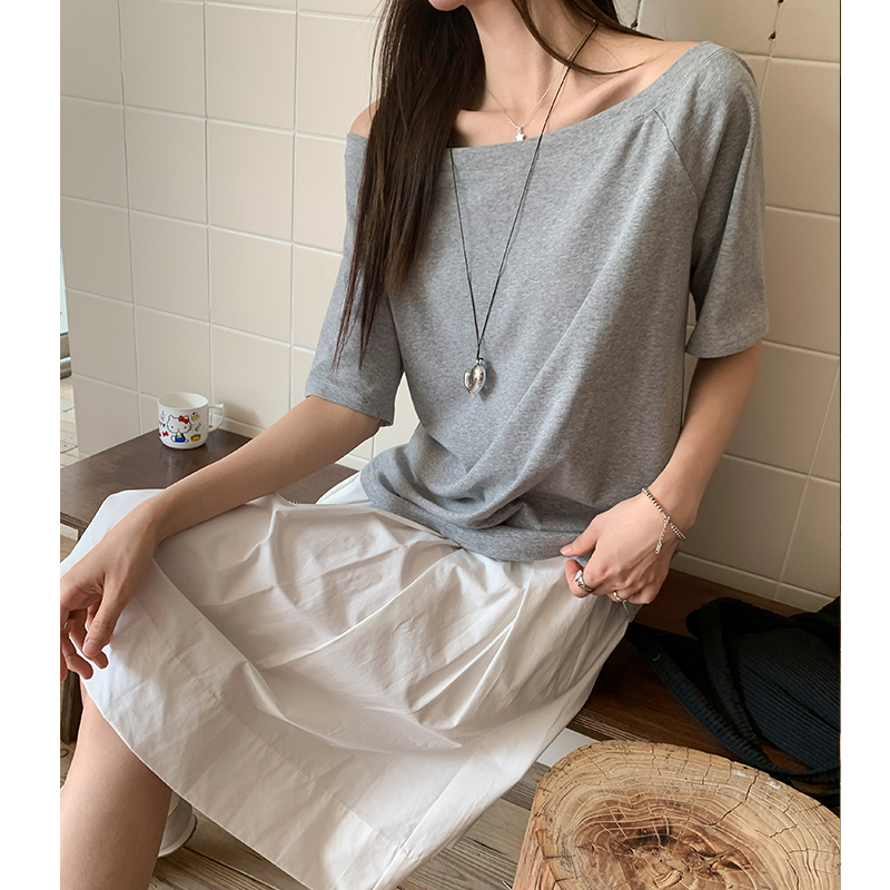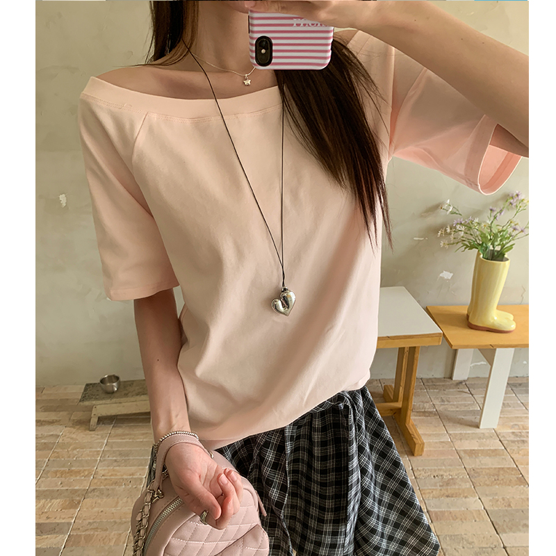 실제 샷 및 실제 가격#Solice Off Short Short Short-Sleeved 티셔츠 여름에 여성을위한 Short-Sleeved T-Shirt New Design 간단하고 다재다능한 슬림하고 느슨한 탑