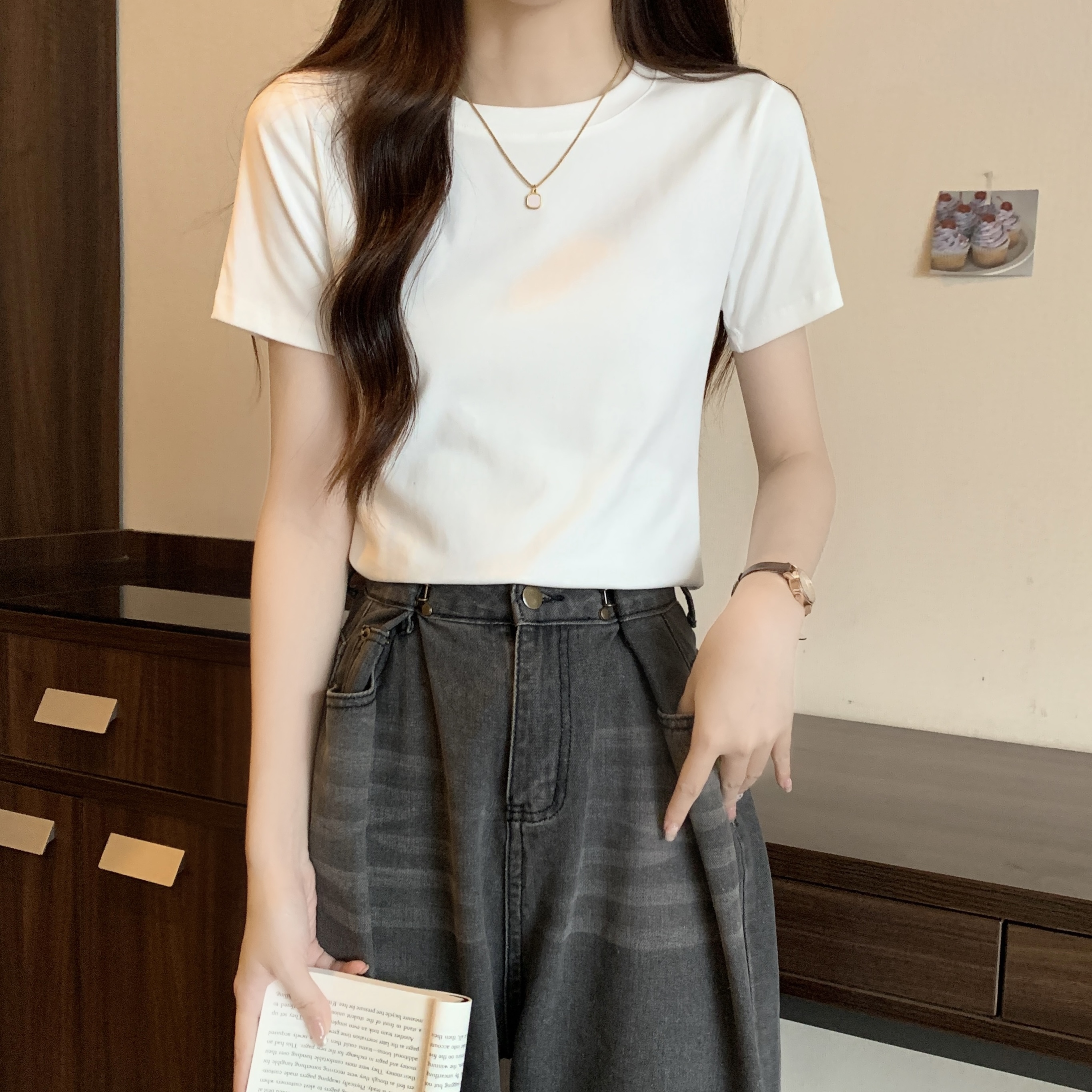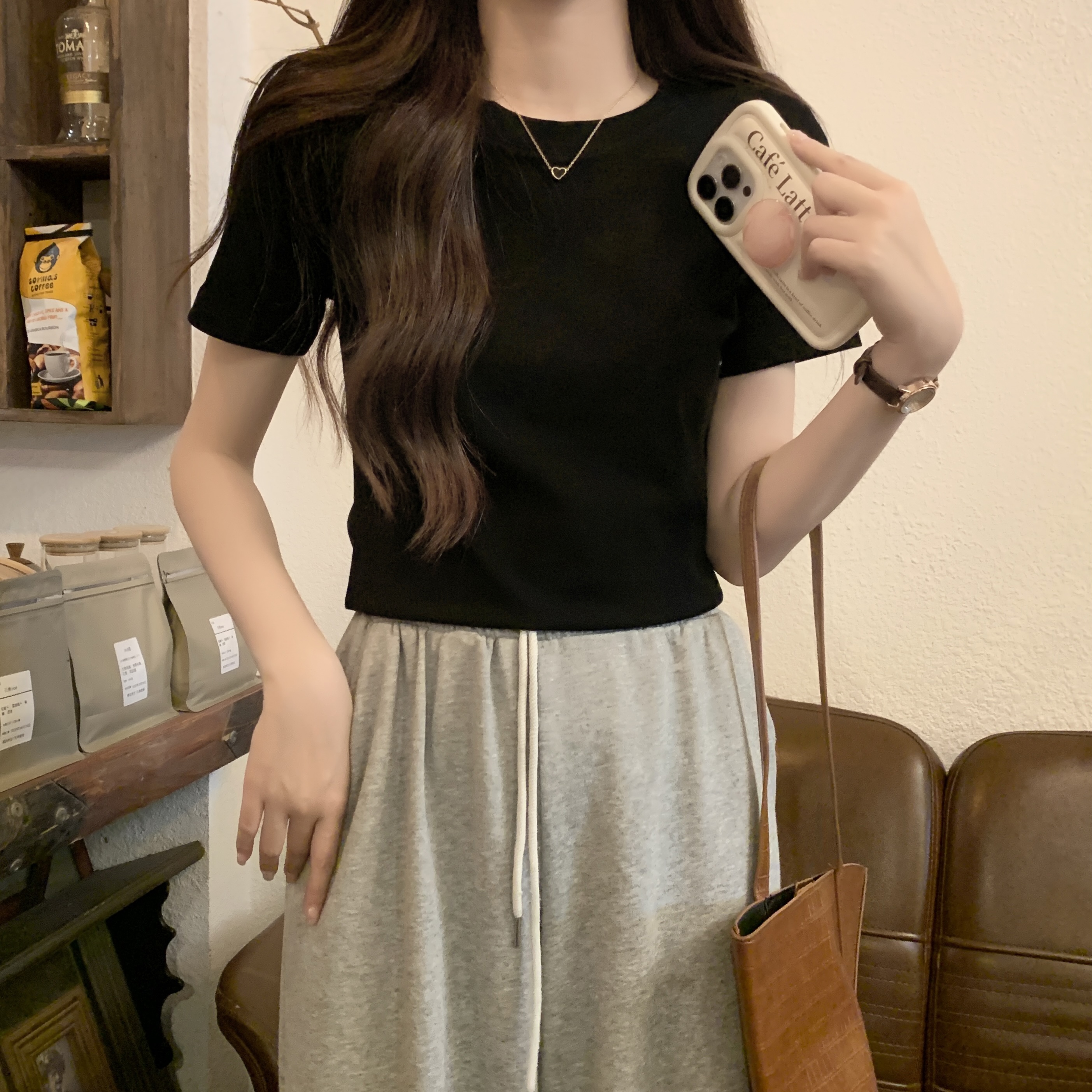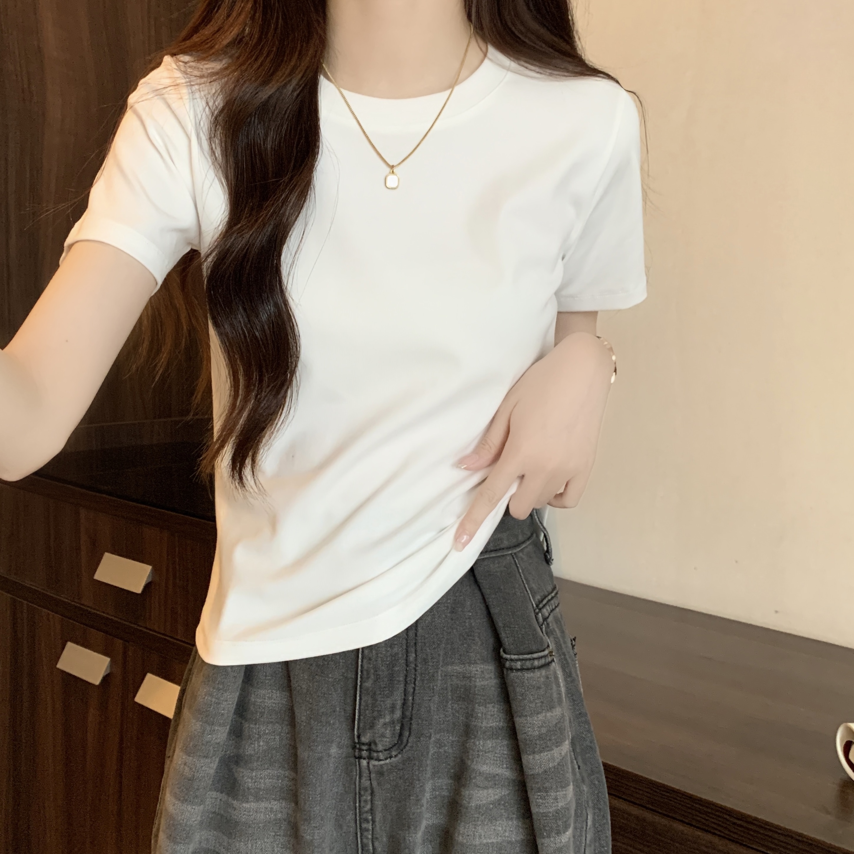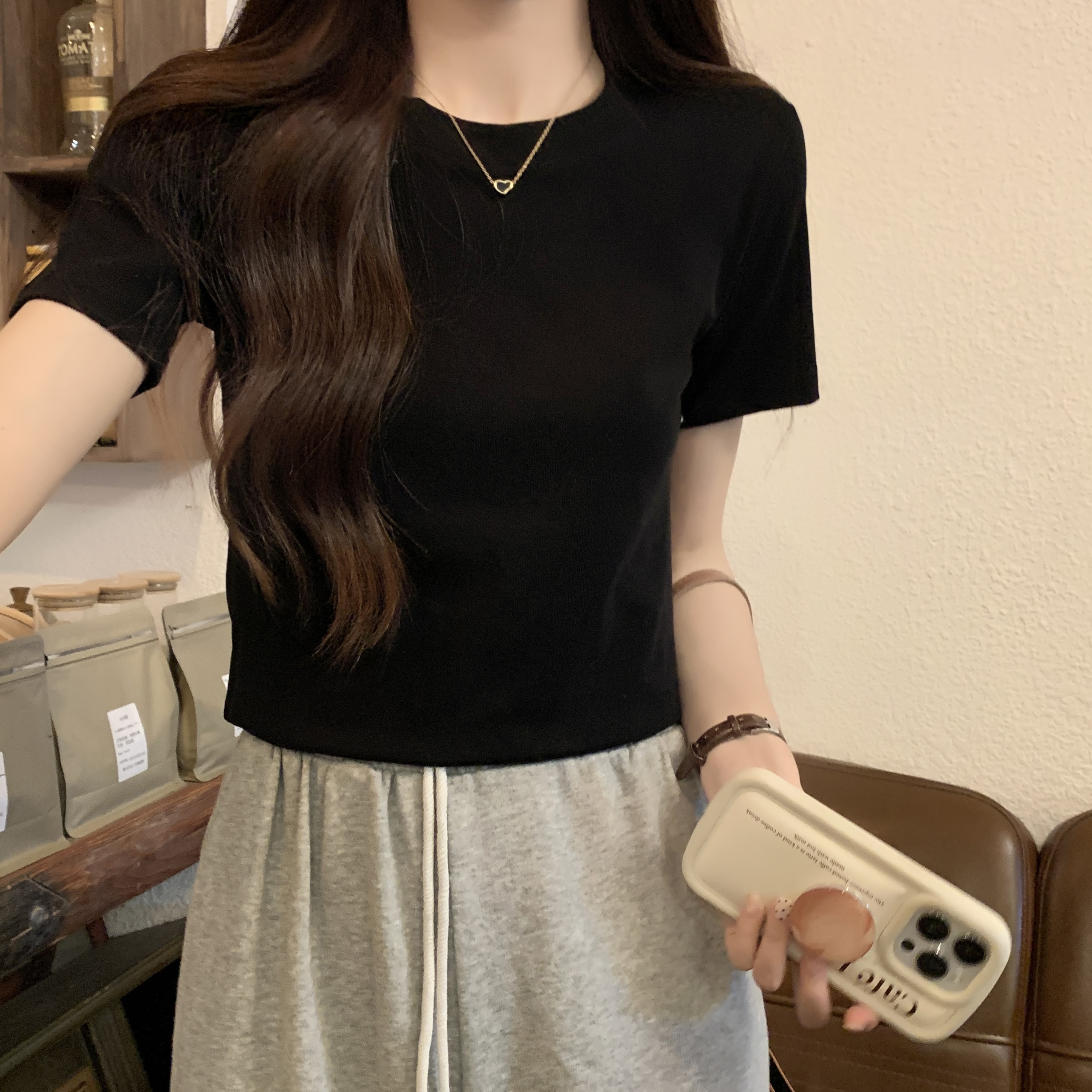 실제 샷, 실제 가격 전방 어깨 어깨 단락 티셔츠 여성을위한 2025 뉴여
