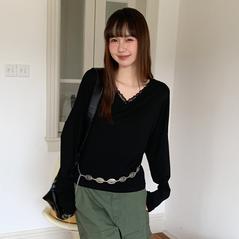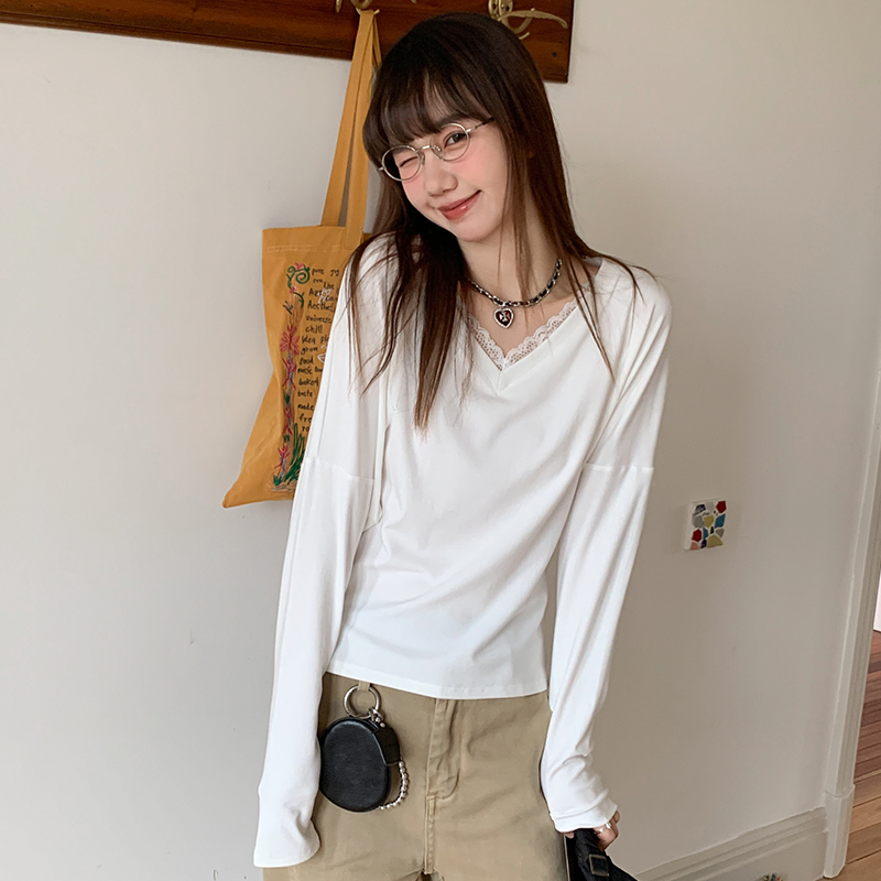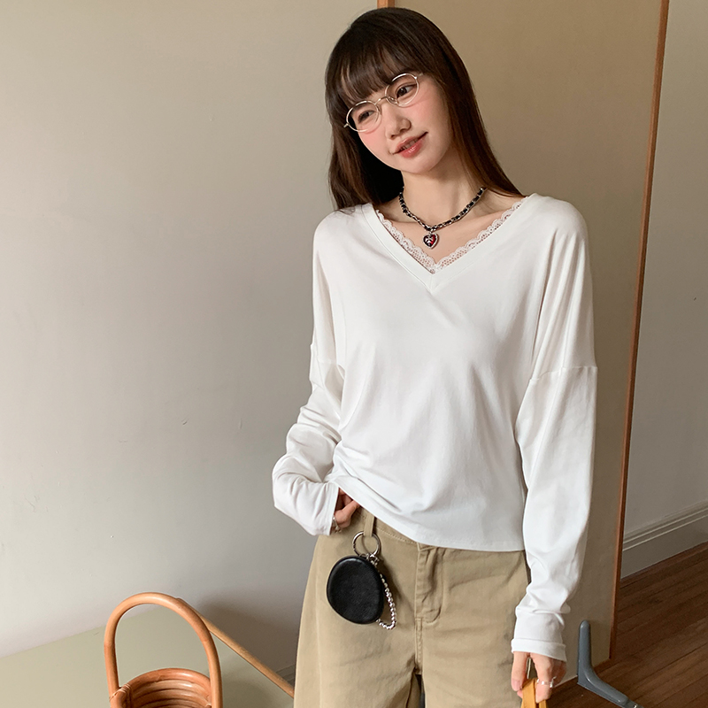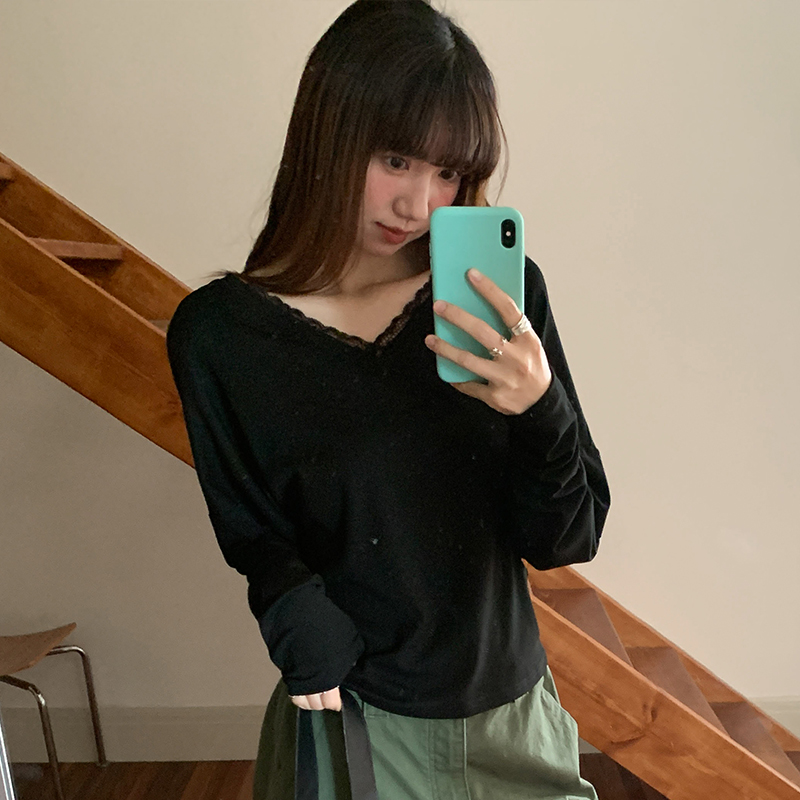 여성을위한 진짜 가격 v- 넥 긴팔베이스 셔츠 여성을위한 레이스 탑을위한 내부 착용을위한 새로운 부드러운 스타일