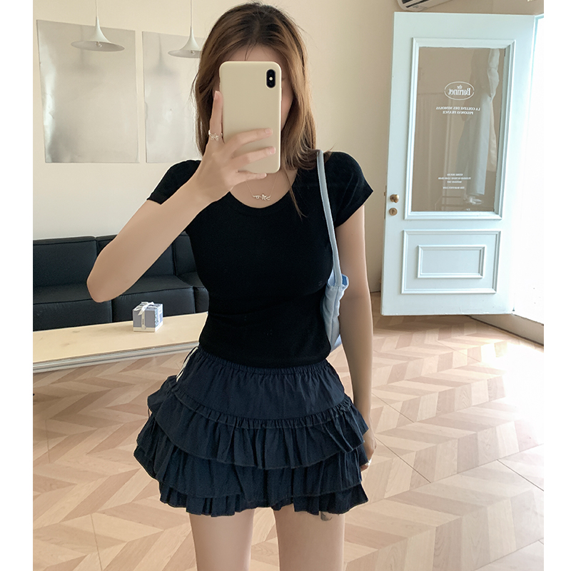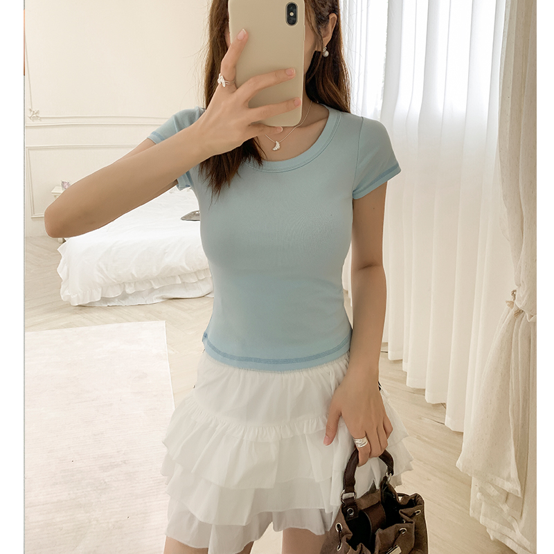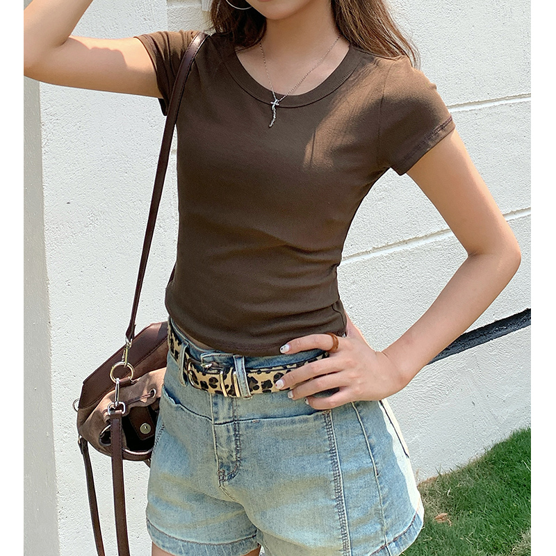 실제 사진 및 가격 기반 간단한 U-Neck Pure Cotton Shoulder Short-Sleeved 티셔츠 여성 여름 2025 New Slim Short Top