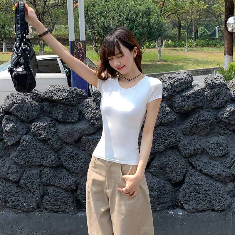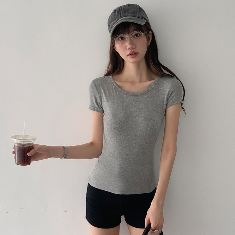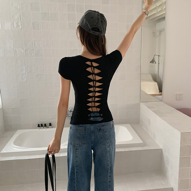실제 샷 및 실제 가격#여름에 여성을위한 섹시한 등이없는 짧은 슬리브 티셔츠 순수하고 반란스러운 디자인과 아름다운 등 뜨거운 여자 짧은 탑