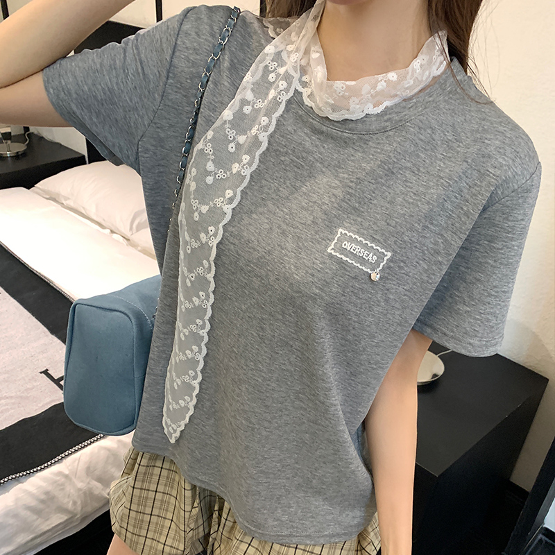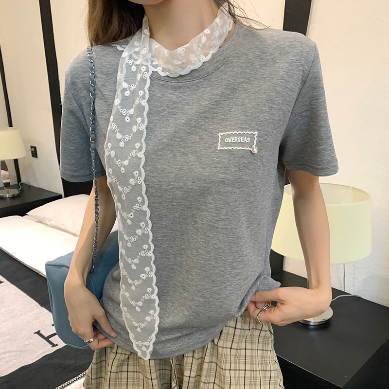 여성용 Real 가격의 흰색 레이스 스 트리머 짧은팔 티셔츠 2025 새로운 디자인 다목적 둥근 목 느슨한 탑